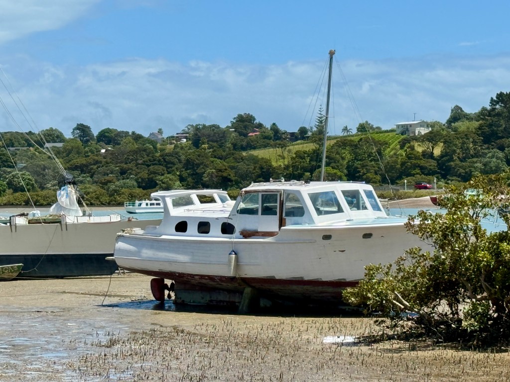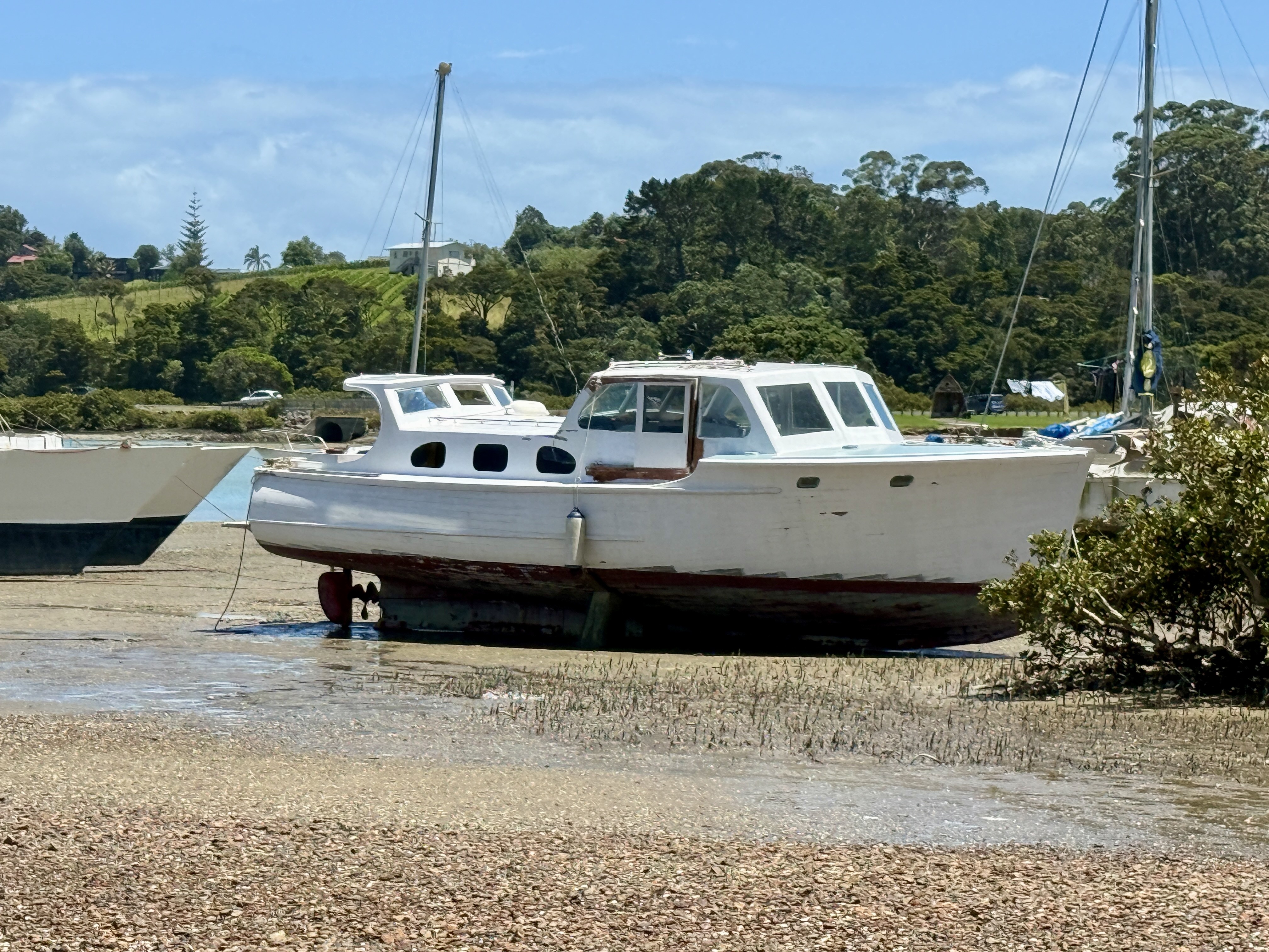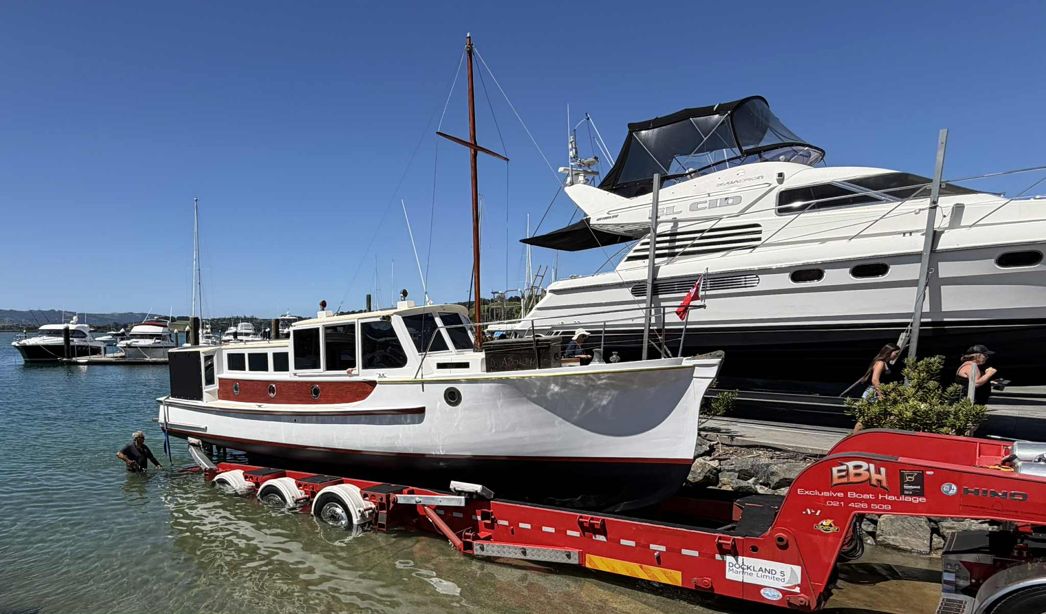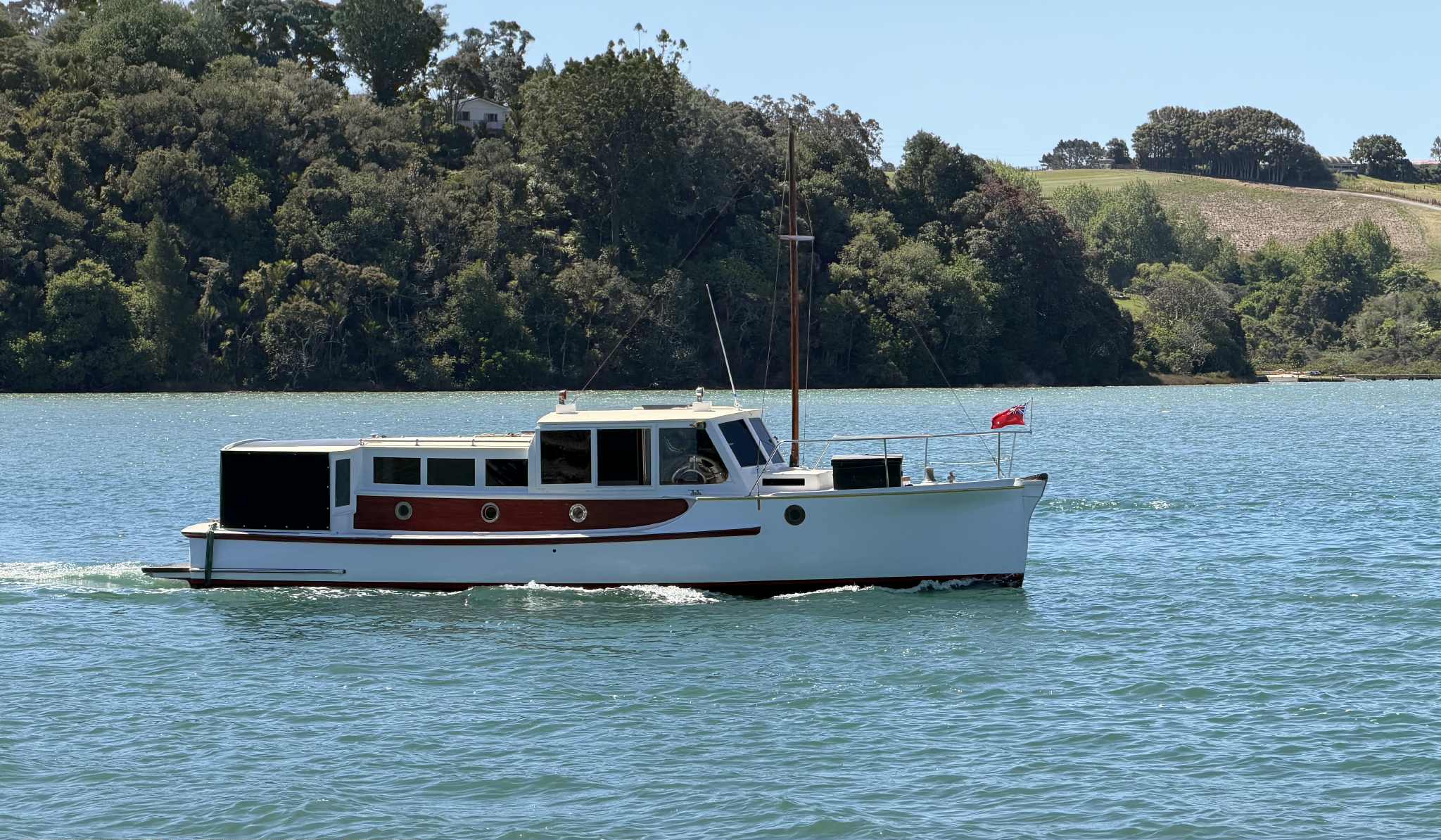 In mid December 2025 WW was contacted by John Woodcock with the good news that the 35’ 1934 classic wooden launch – NANA had just been relaunched after a mammoth undertaking to save her.You see back in June 2023 WW ran an SOS story on the boat, she was in very sad state. In fact the listing was an ‘as-is-where-is’ listing. As in life, the good lookers tend to receive the special treatment, this wasn’t NANA’s first rodeo – she had been close to an appointment with a back-hoe several times. Link here to her in 2019 post a refit. https://waitematawoodys.com/2019/06/03/nana-3/