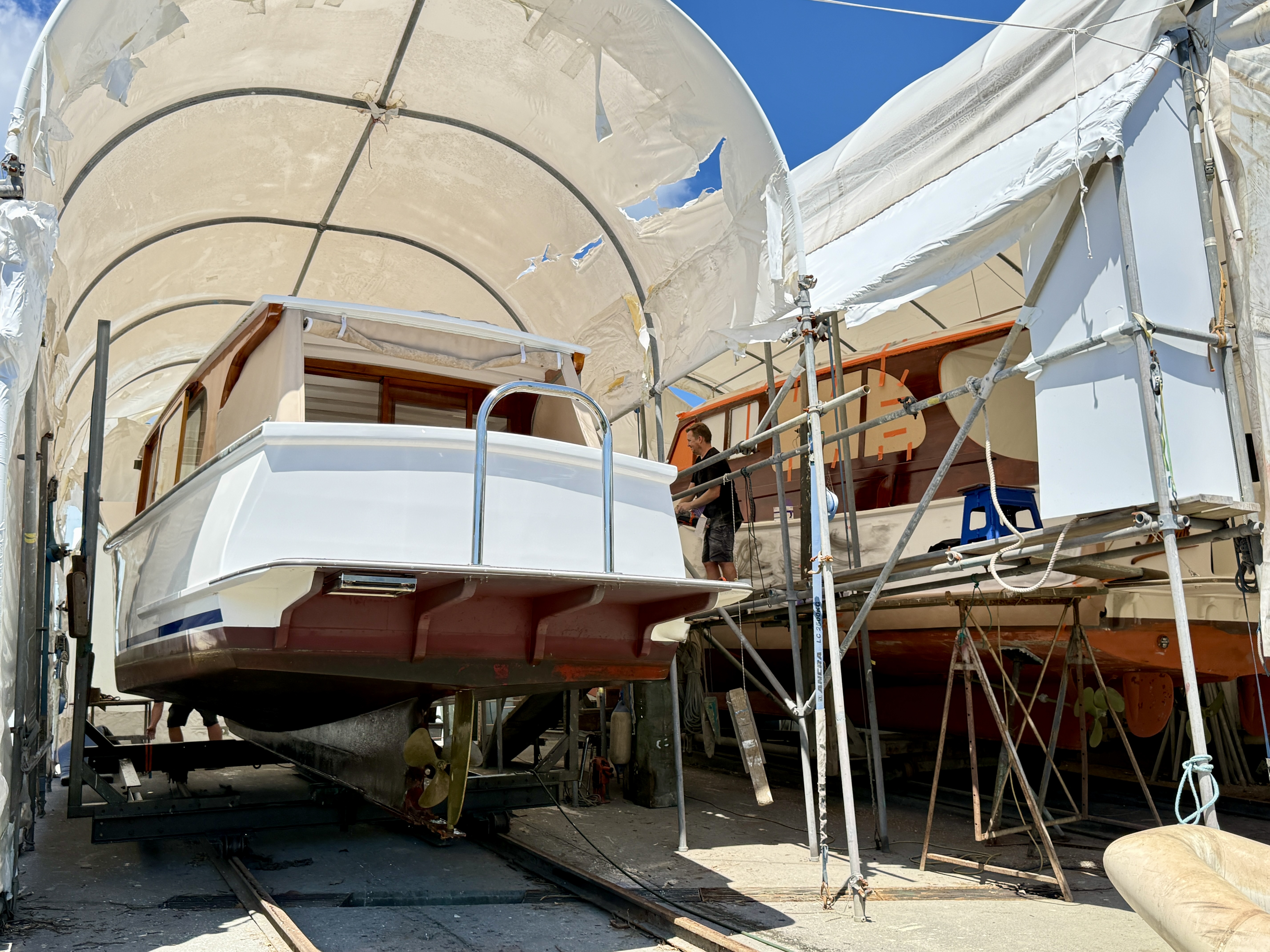 Along side NGAHI is the 35’6” Lane Motor Boat Co. 1945 launch – HANI (Wanda II) getting some serious TLC.