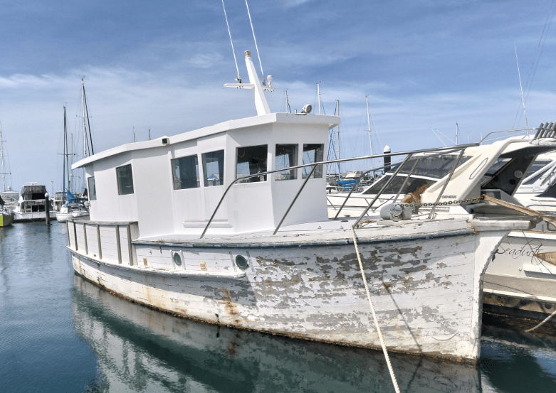 End result was the NZ Navy fitted a 6/71 165HP GM Detroit 2 stroke diesel, that had a hydraulic gear box that could be operated by cable. WIRIHANA retained this engine for a great many years and was eventually replaced in the early 2000’s by Rusty Gould (Jack Gould’s son), with a 180hp artificially aspirated 6 cyl. Scania diesel, which she still has today.