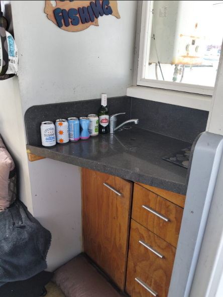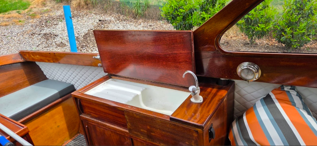 Her original engine was a slow running 4 cyl Kelvin with no reduction gear and a petrol start. This engine also had a ‘day diesel tank’ fitted to the engine room wall with a gravity feed to the engine with the main diesel tanks aft, from which diesel had to be pumped daily, into the day tank, manually.