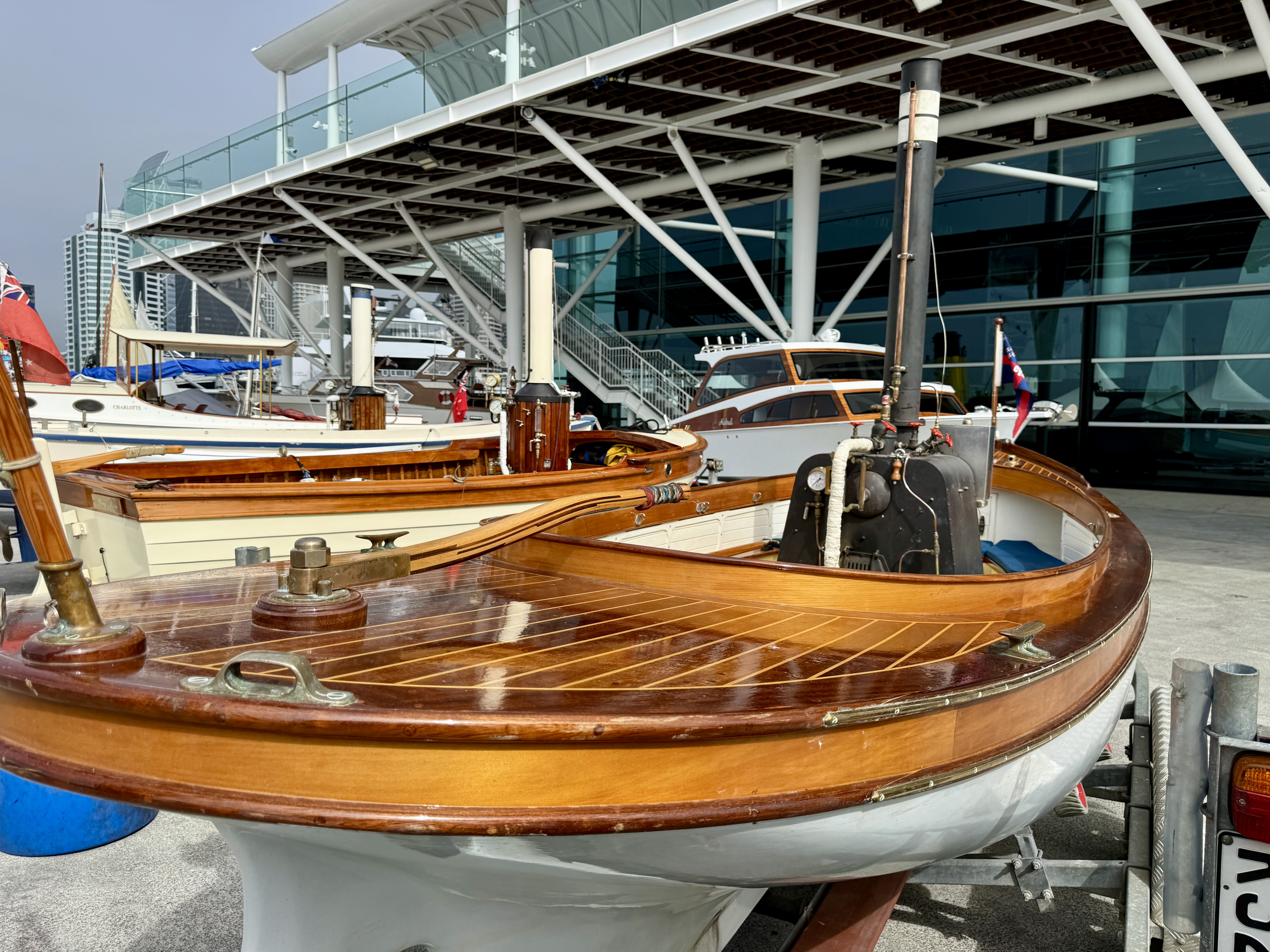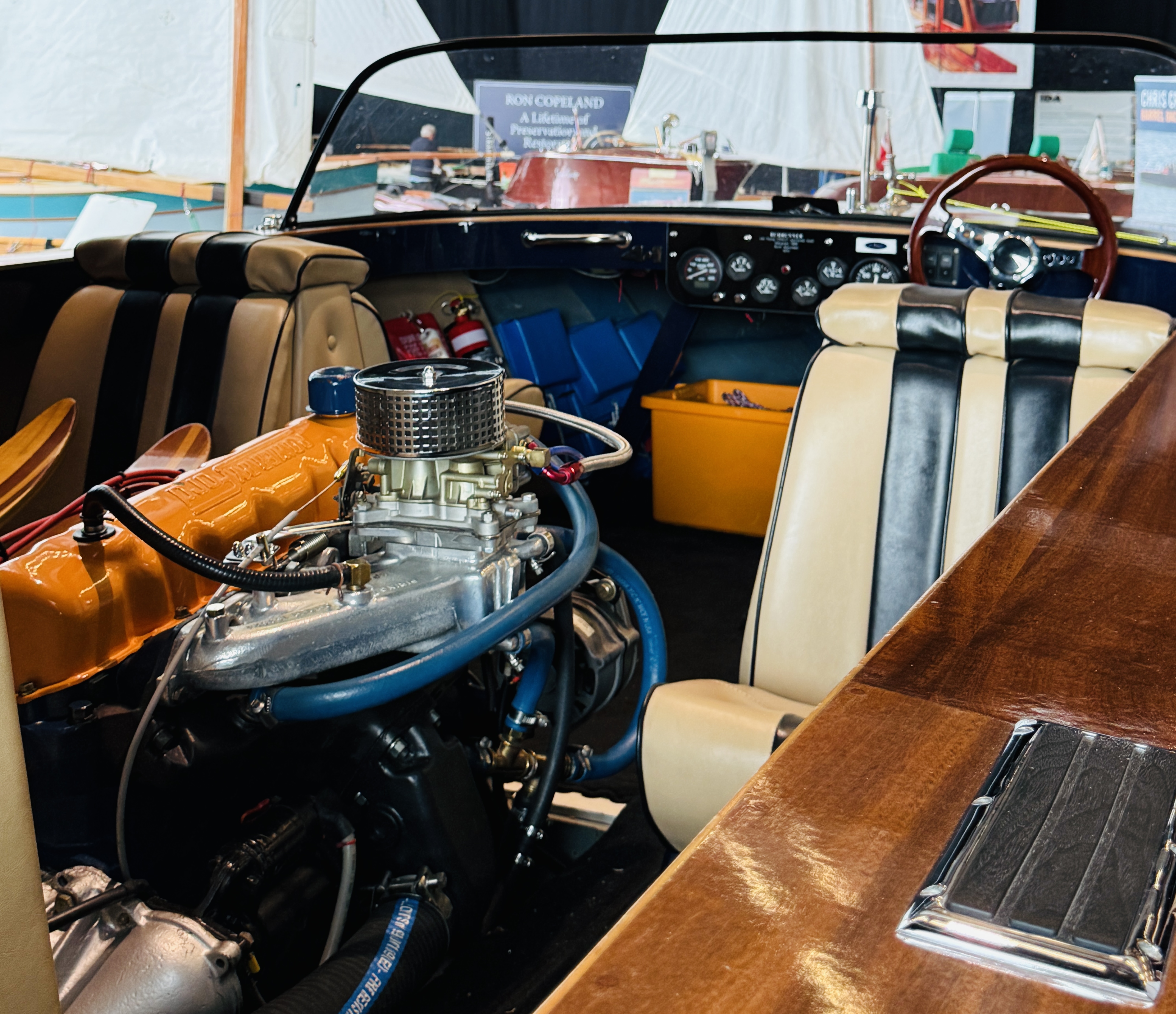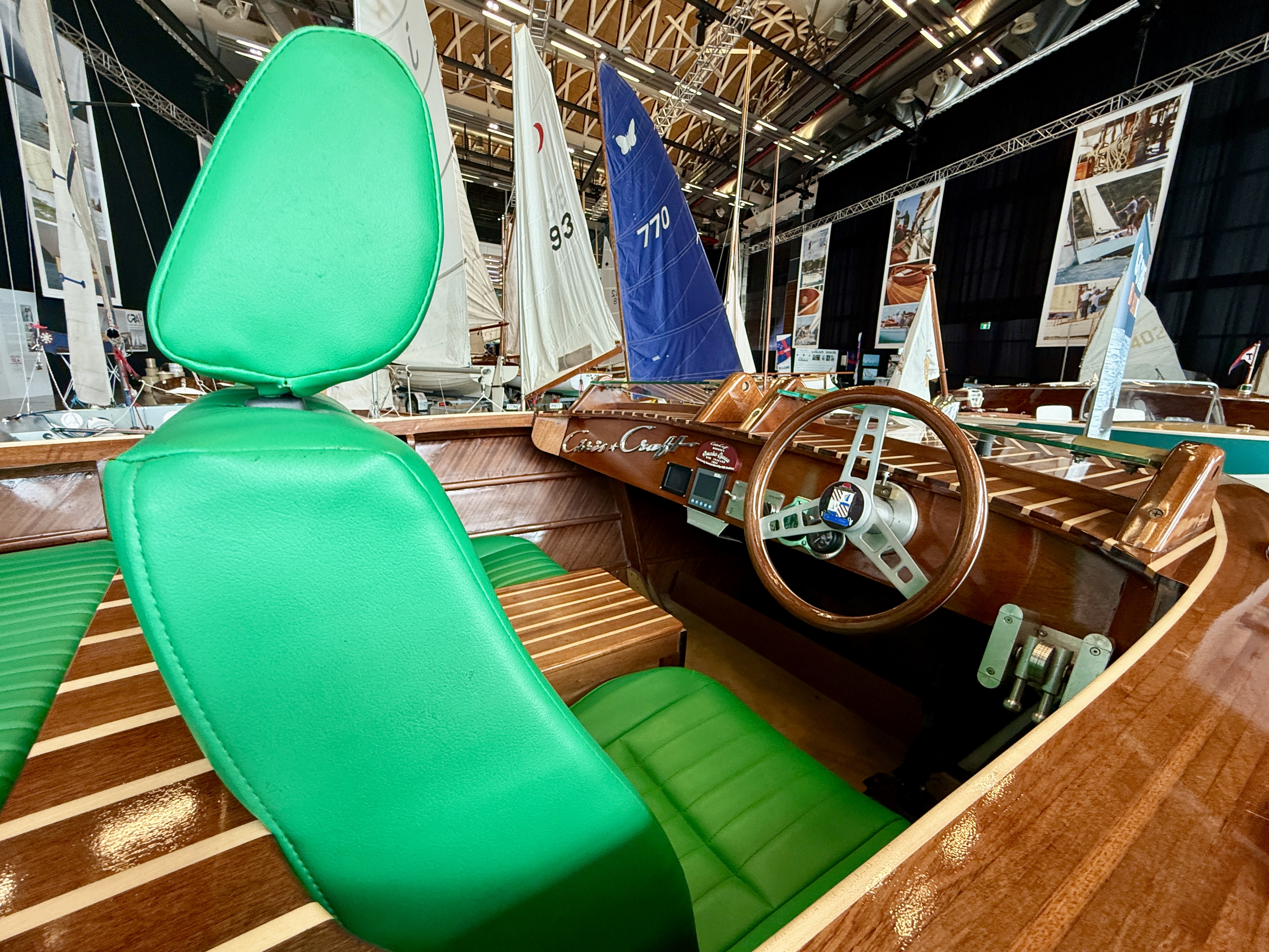 Today’s woody story focuses on the undercover displays and surrounding shore-side areas. Tomorrow we’ll bring you Part #2 — a full dockside walk-through featuring the boats afloat.