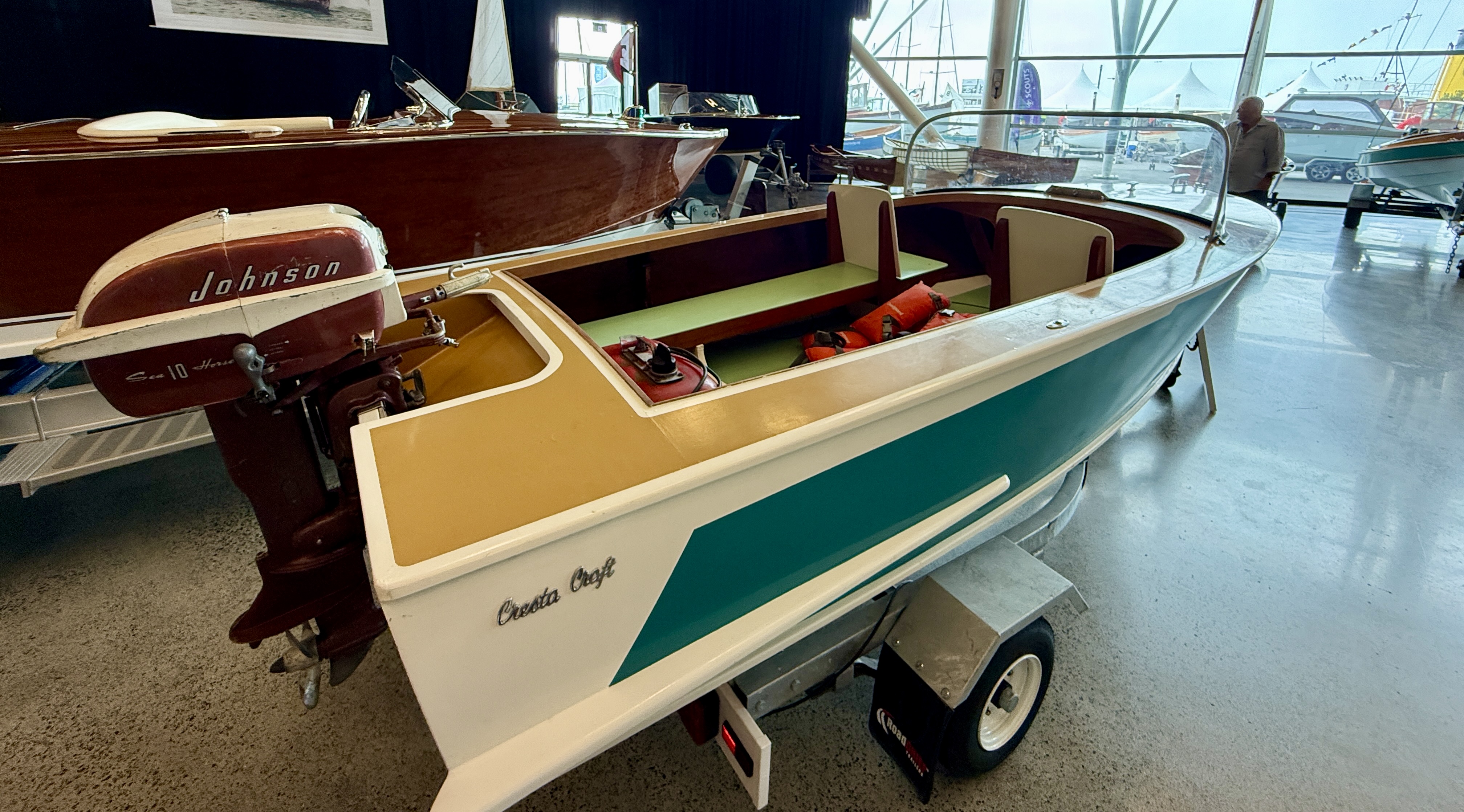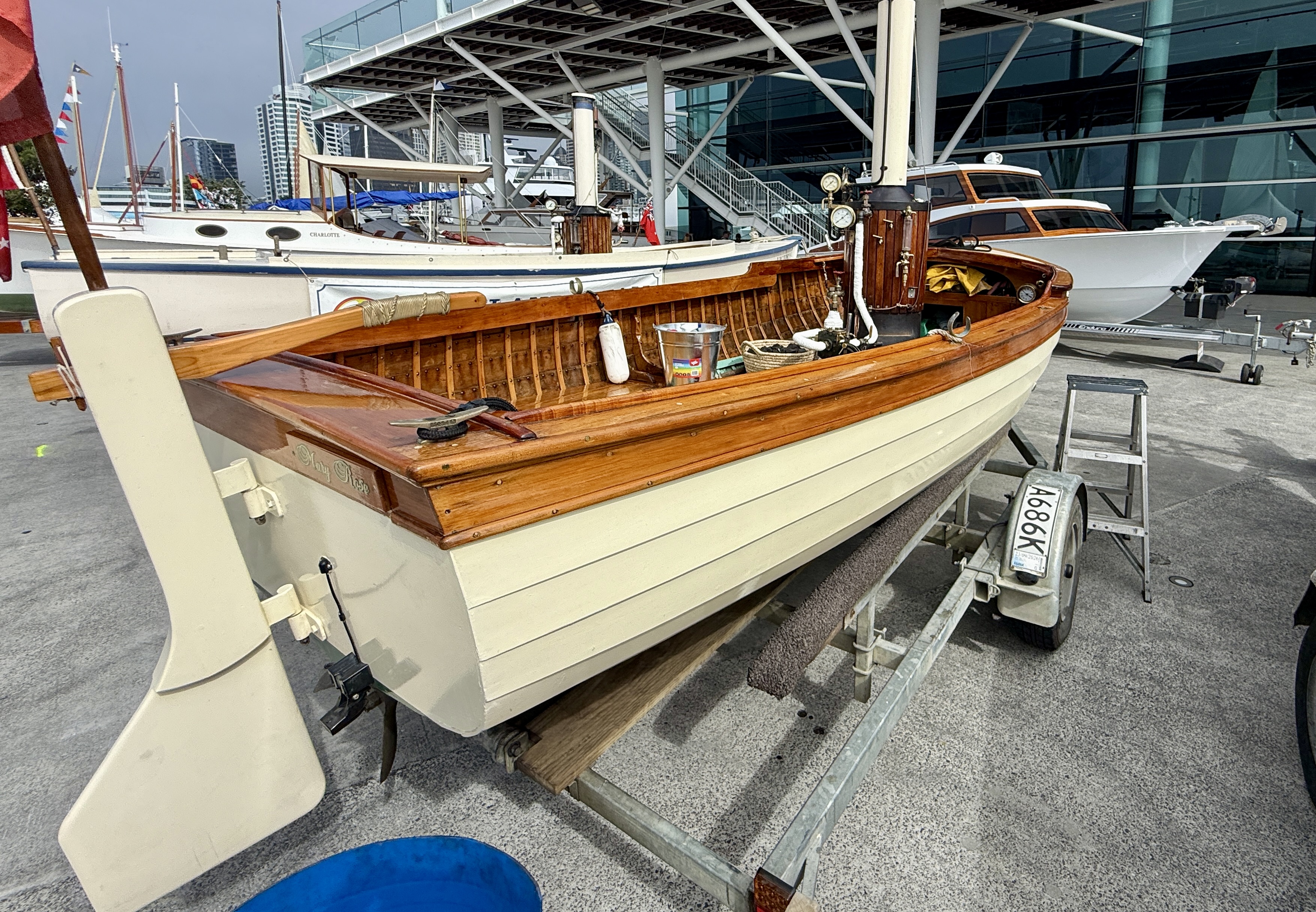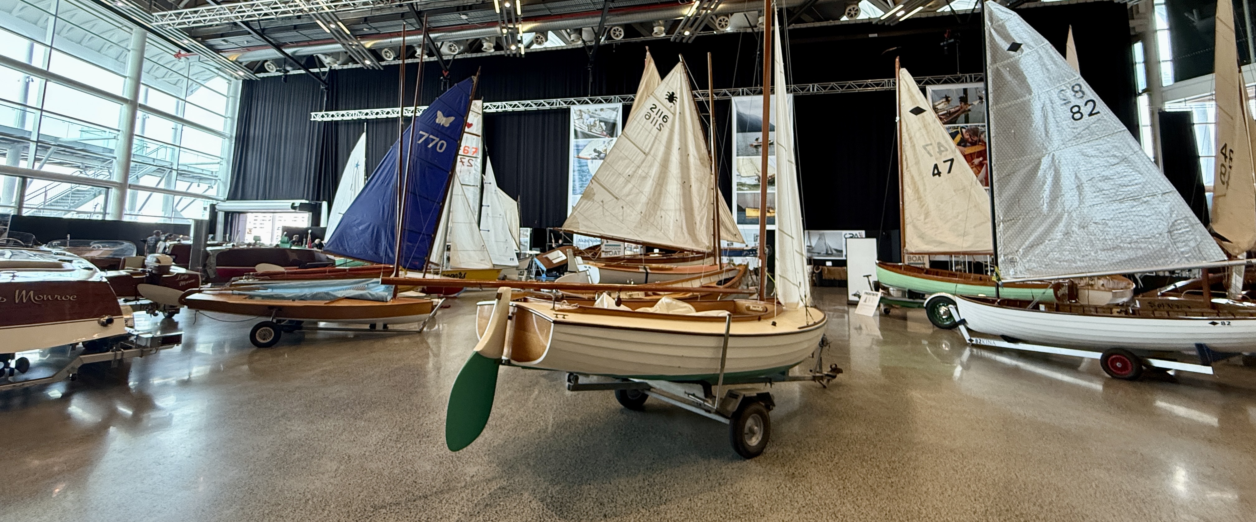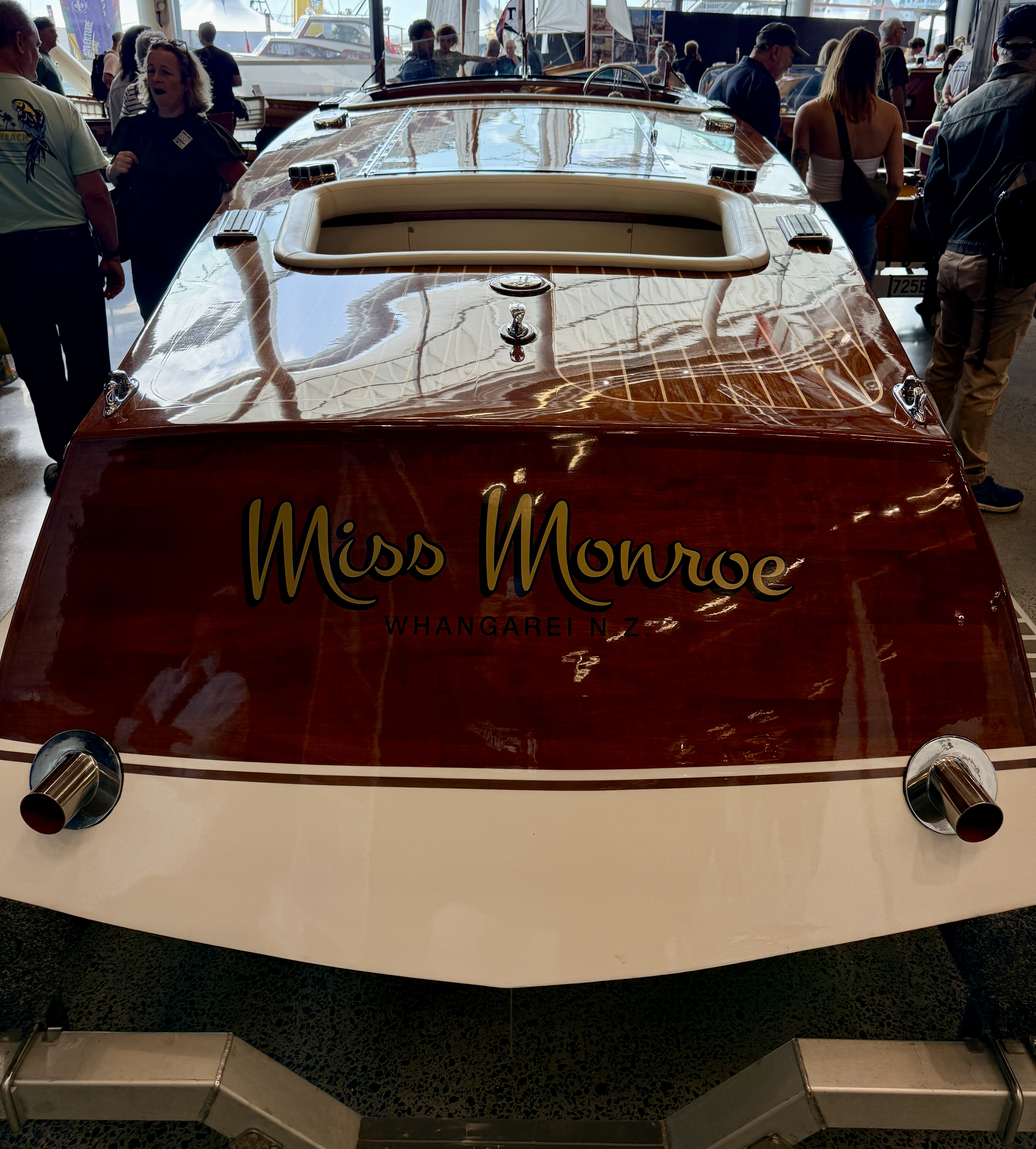 Today’s woody story focuses on the undercover displays and surrounding shore-side areas. Tomorrow we’ll bring you Part #2 — a full dockside walk-through featuring the boats afloat.