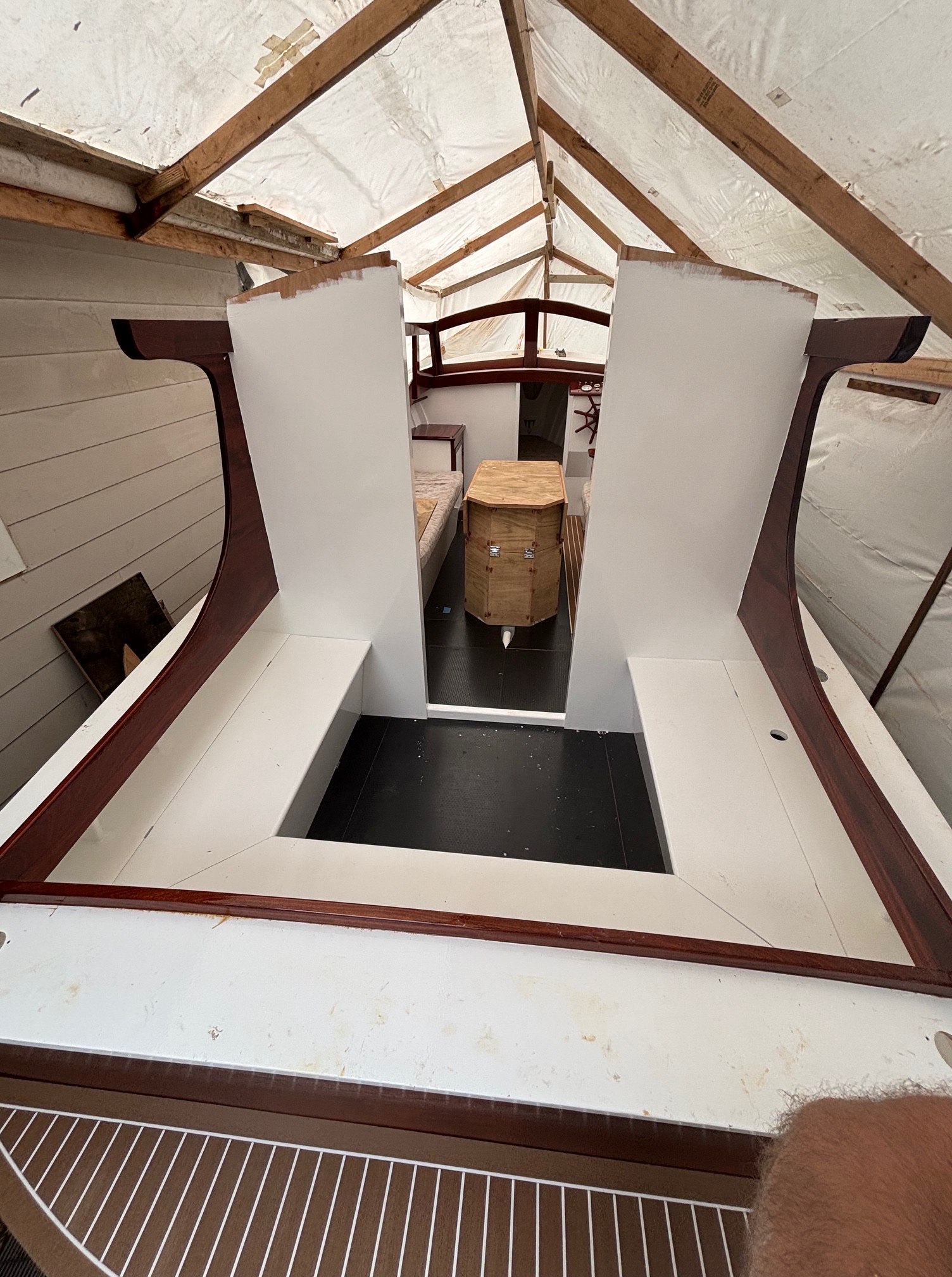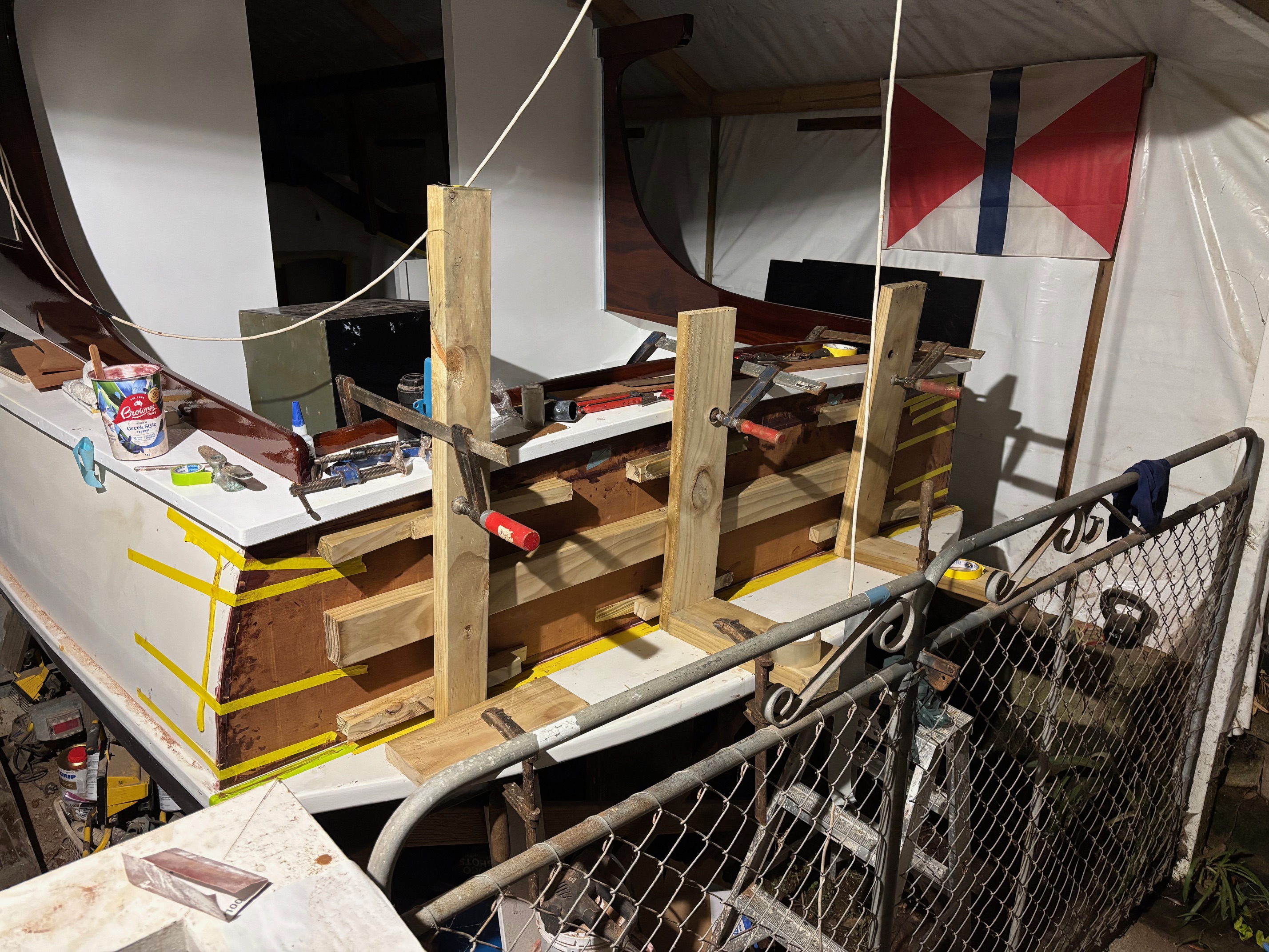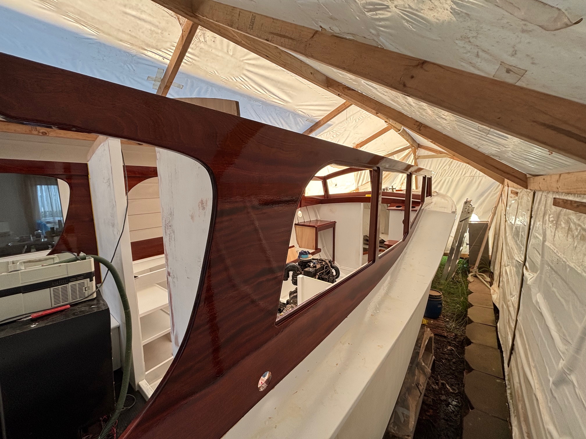 Then Rob Griffin was mooching around the Waiheke Marina and spotted a new arrival – KERERU – the 35’, 1911 Chas Bailey Jnr built double ender launch. We learnt last Wednesday that she had recently relocated to Auckland from Picton. Looks like Waiheke Island will be her new home. Link below to Wednesday story https://waitematawoodys.com/2026/04/22/classic-wooden-launch-kereru-arrives-in-auckland/
