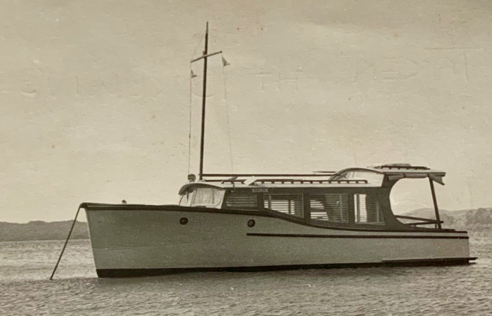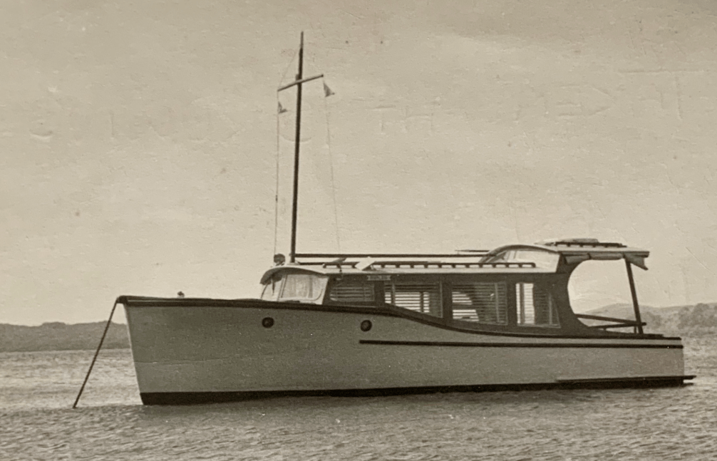 First up Angus Rogers sent in two great photos of MAITA I – the 30’, 1928 Collings & Bell built launch anchored in Sandy Bay, Waiheke.