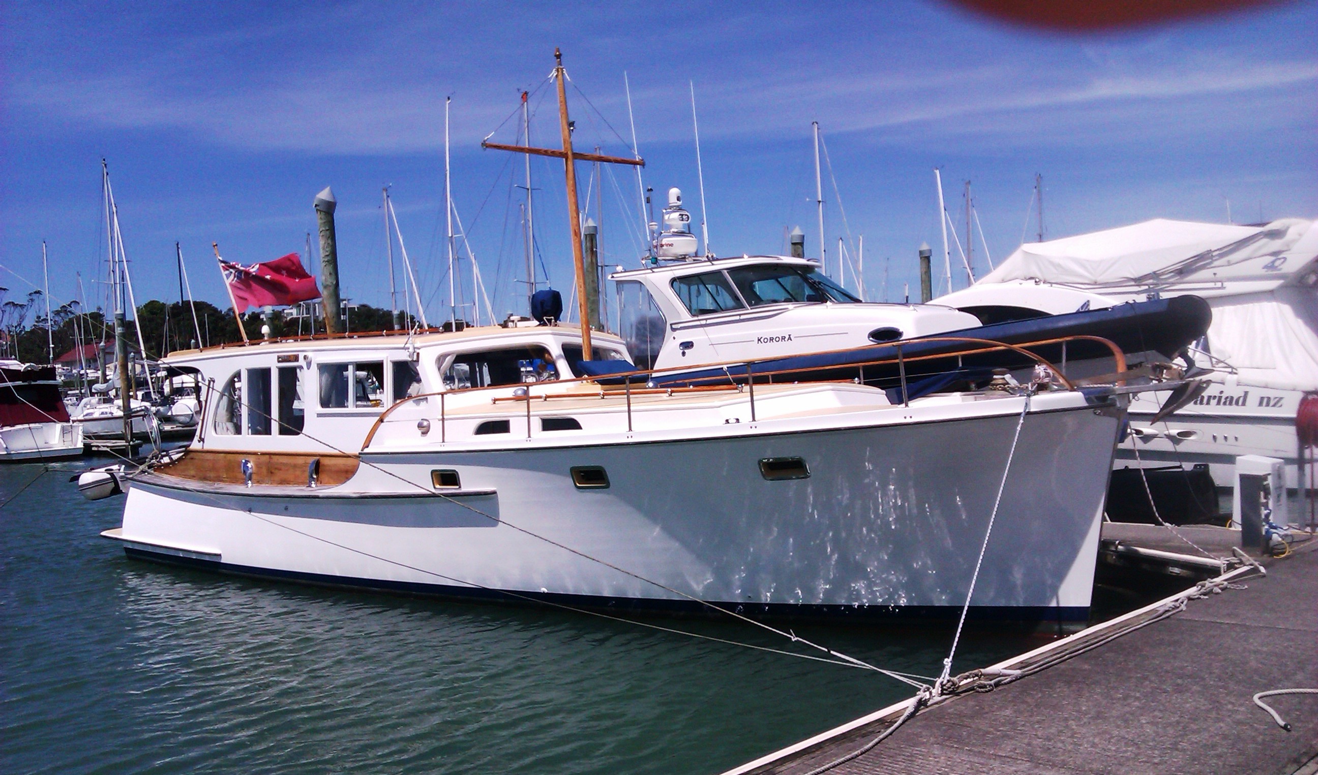 As the present owner of Connie V I have followed her story as posted on this blog with a good deal of interest. The first article entitled “The story of Connie V” has been taken from Paul Titcheners book “Sea classics of New Zealand”. Paul is a member (by marriage) of the Valentine family and his account of her history is the correct one. Connie was completed and launched in December 1949. She was registered (Official No.178444) in February 1950. Originally she was powered by two petrol Chrysler Ace Marine engines. In 1984 these were replaced by two Ford 85hp Lees Marine Diesels. Ken Ricketts has confused Connie with Wanda when he says that Connies original Greys were replaced by a pair of BMC’s. As far as I know Wanda is still fitted with those BMC’s. I purchased Connie from the Valentines in 1999. She is still fit and well and in Auckland. Paul in his story comments that; “many a fine party has been held in her spacious saloon cabin” and dear readers you can be assured that that tradition continues.