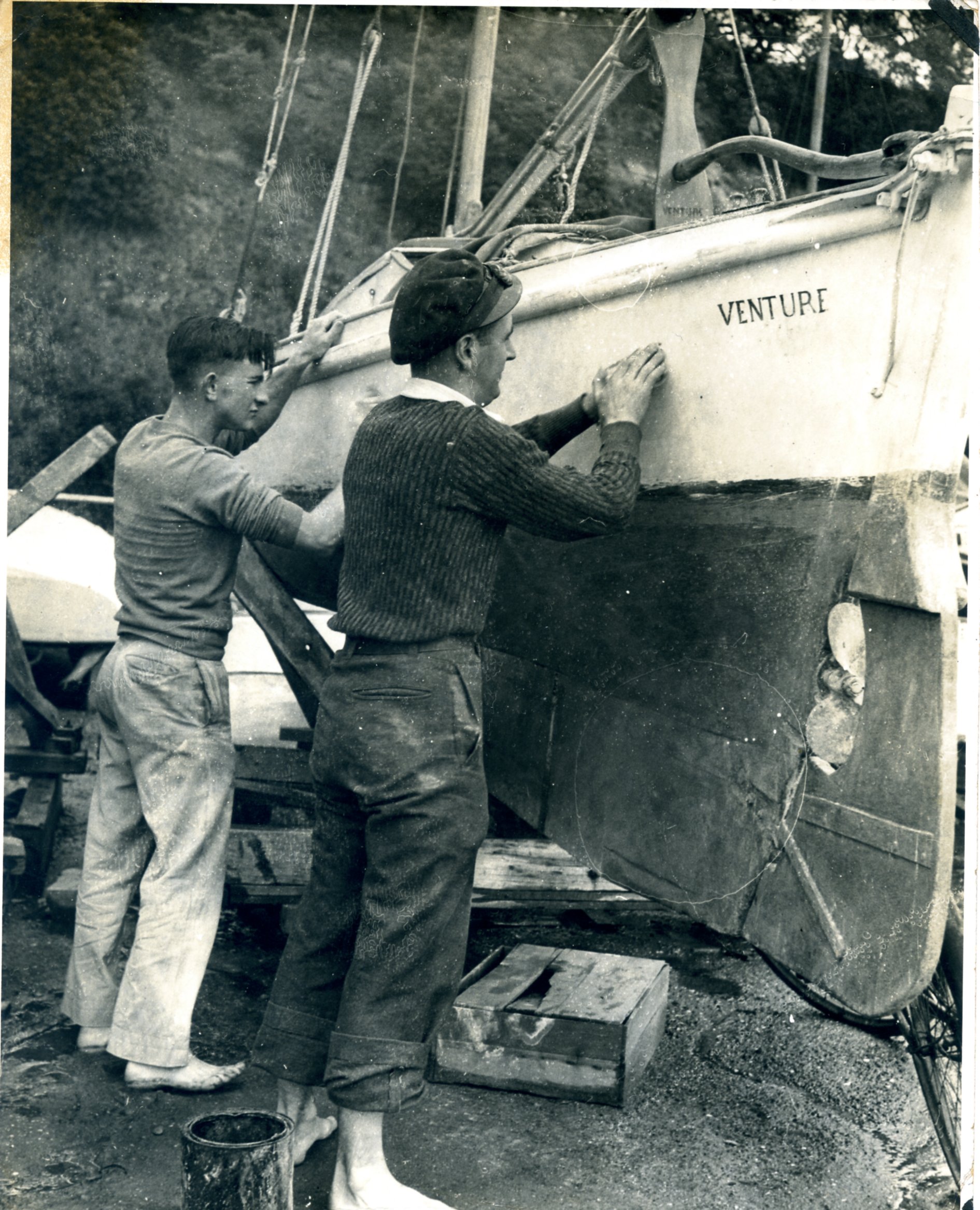 Venture on the Hard, Don Ross stern and Graham Gordon midships. Okahu Bay Published May 8, 2015 at 1891 × 2335 in Venture – Sailing Sunday Don Ross (L) Graham Gordon (R) at Okahu Bay Discover more from waitematawoodys.com #1 for classic wooden boat stories, info, advice & news - updated daily - 14+ million views Subscribe to get the latest posts sent to your email. Type your email… Subscribe Share this: Click to email a link to a friend (Opens in new window) Email Tweet Click to print (Opens in new window) Print Like Loading...