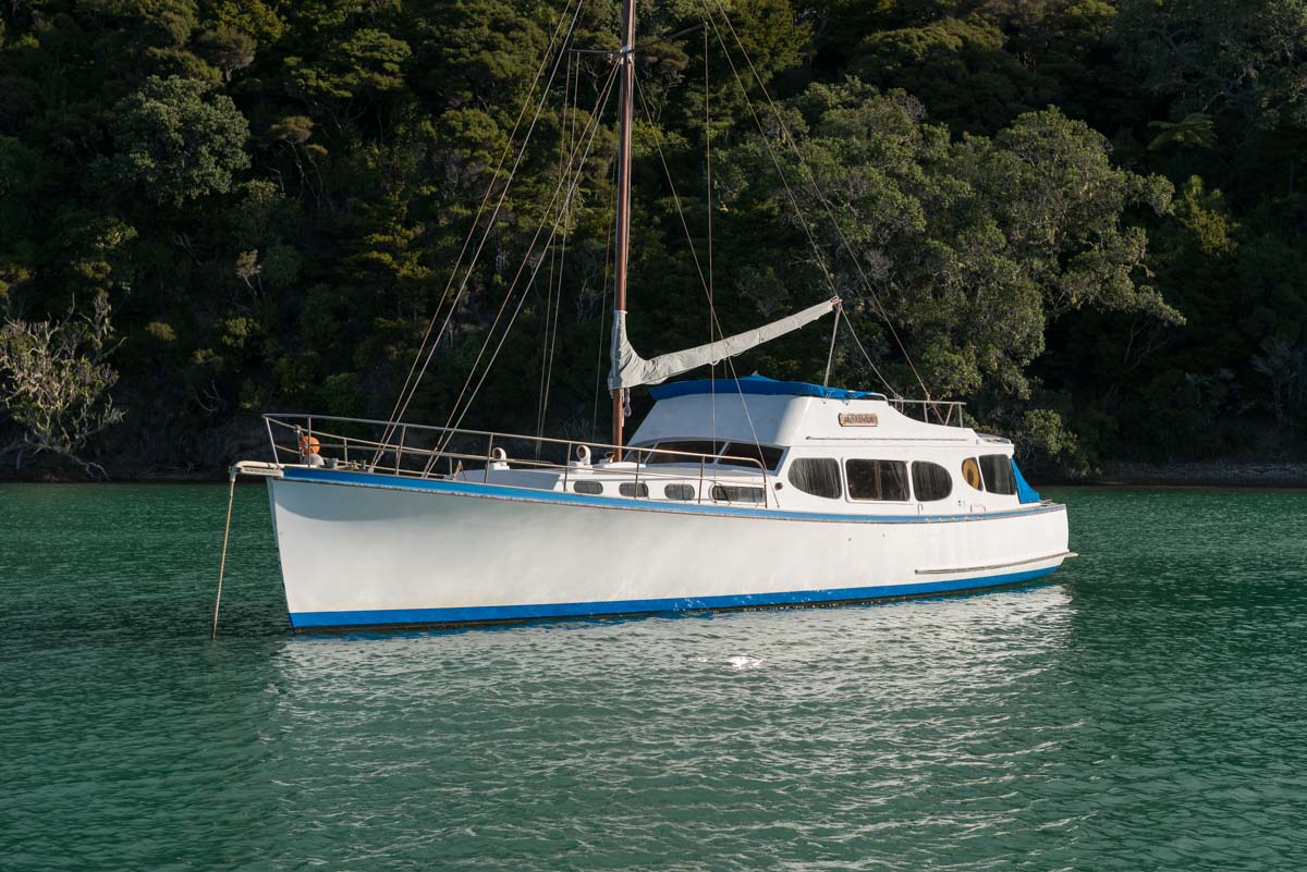 This is a jim young launch presently owned by Tom Hatold and is anchored in Parekura bay Bay of Islands. At one stage she was owned by Spic Spicer who had her in 1968.Tom has her in very good condition and uses her frequently with family.