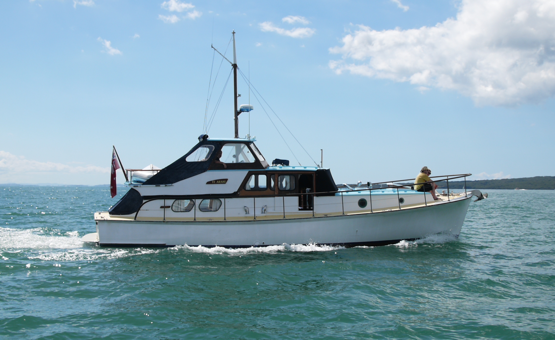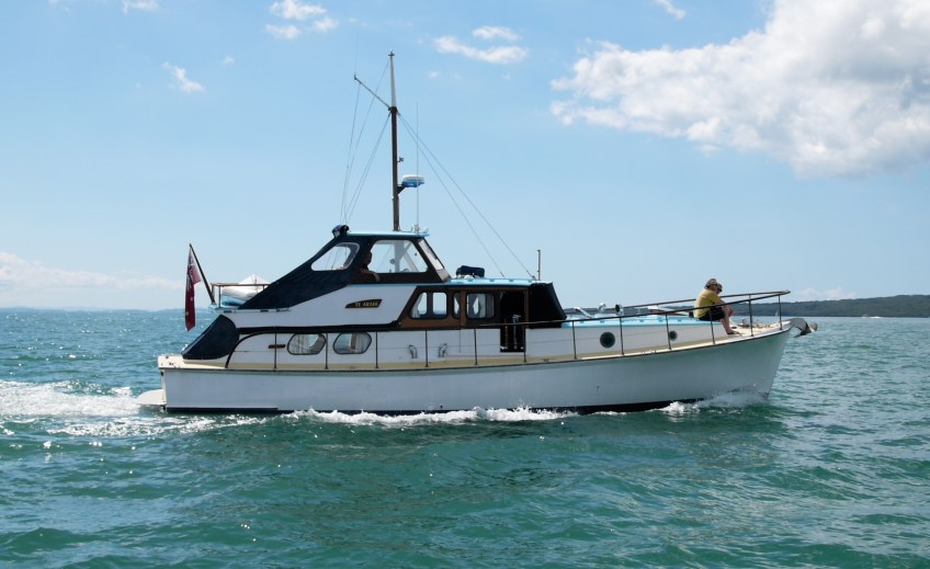 Te Arahi, a Percy Voss boat launched 1965, on our way to look at the classics sailing