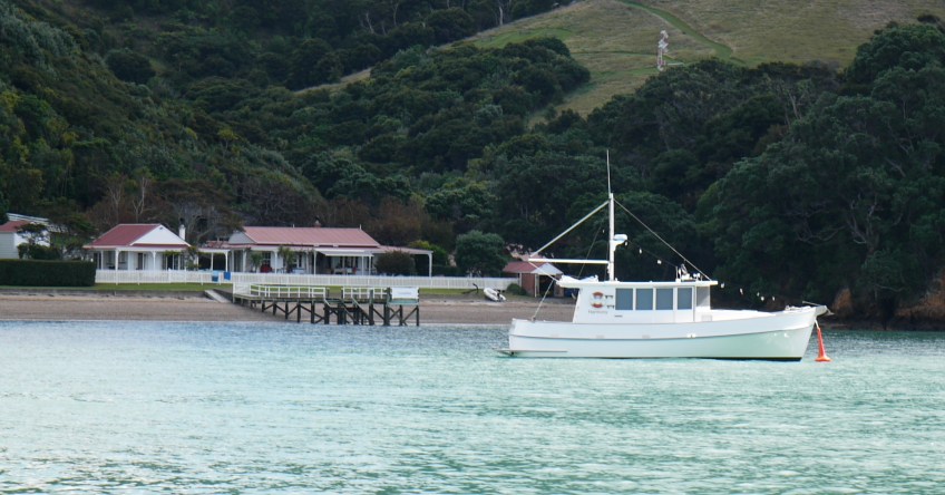 Yes, this is Harmony built by Jim Carey & Neville Robinson at Carey’s Boatyard on the foreshore in Picton. We purchased her in July 2016 and after some refurbishment, brought her to Waiheke in December. She will be moored off our jetty at Connells Bay.