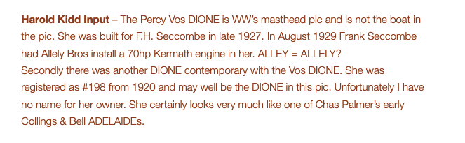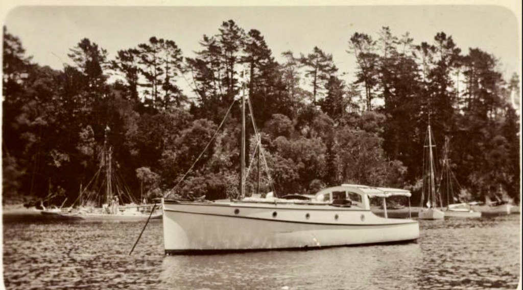 Now this is where it gets confusing – previously (June 2018) Lew posted a photo of the launch below and commented it was ‘the Alley family launch, Dione, at anchor at Matiatia, Waiheke Island’. At the time Harold Kidd commented as below (after photo)