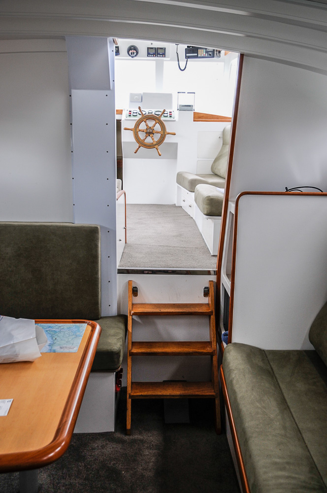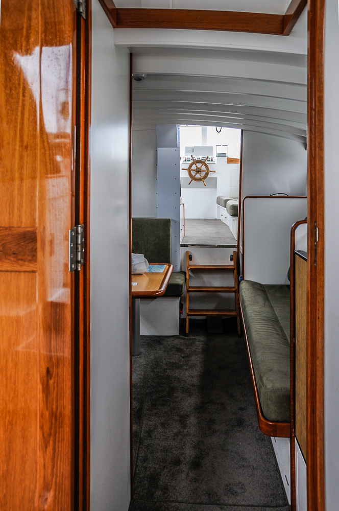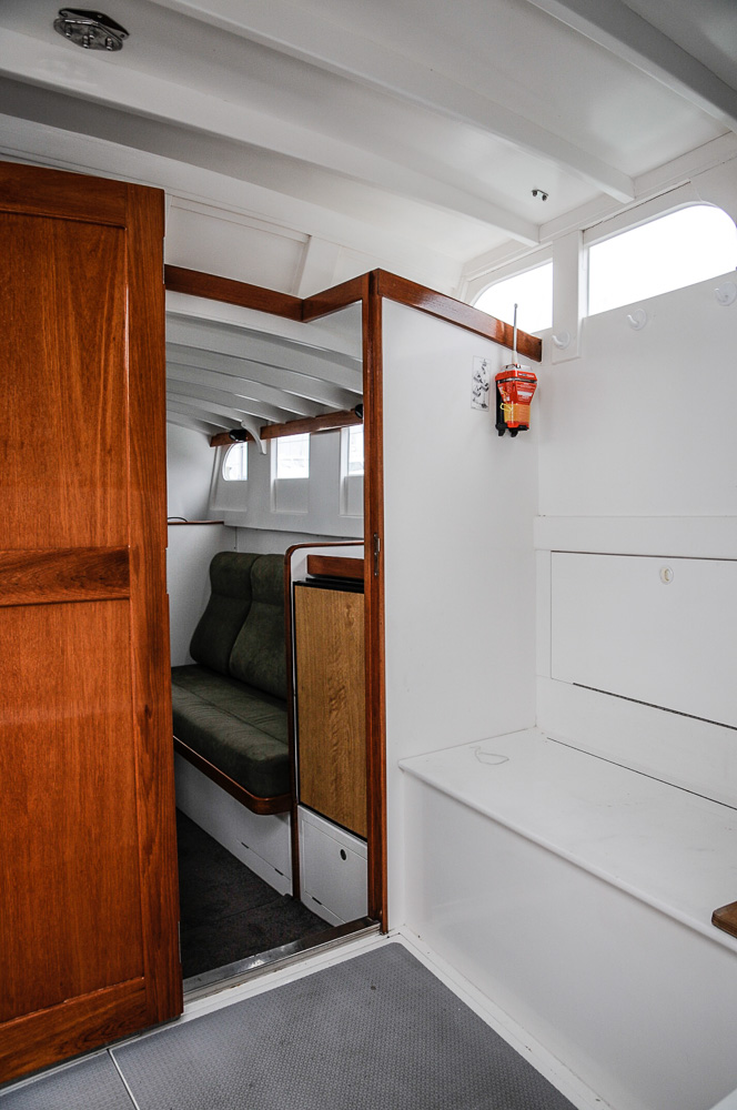 By the time I bought her most of the original furniture had gone and been replaced by a mish-mash of all kinds of strange things. There was a large armchair in one corner of the wheelhouse which in fact was a refrigeration cabinet. And when it rained the cabin leaked like a sieve.