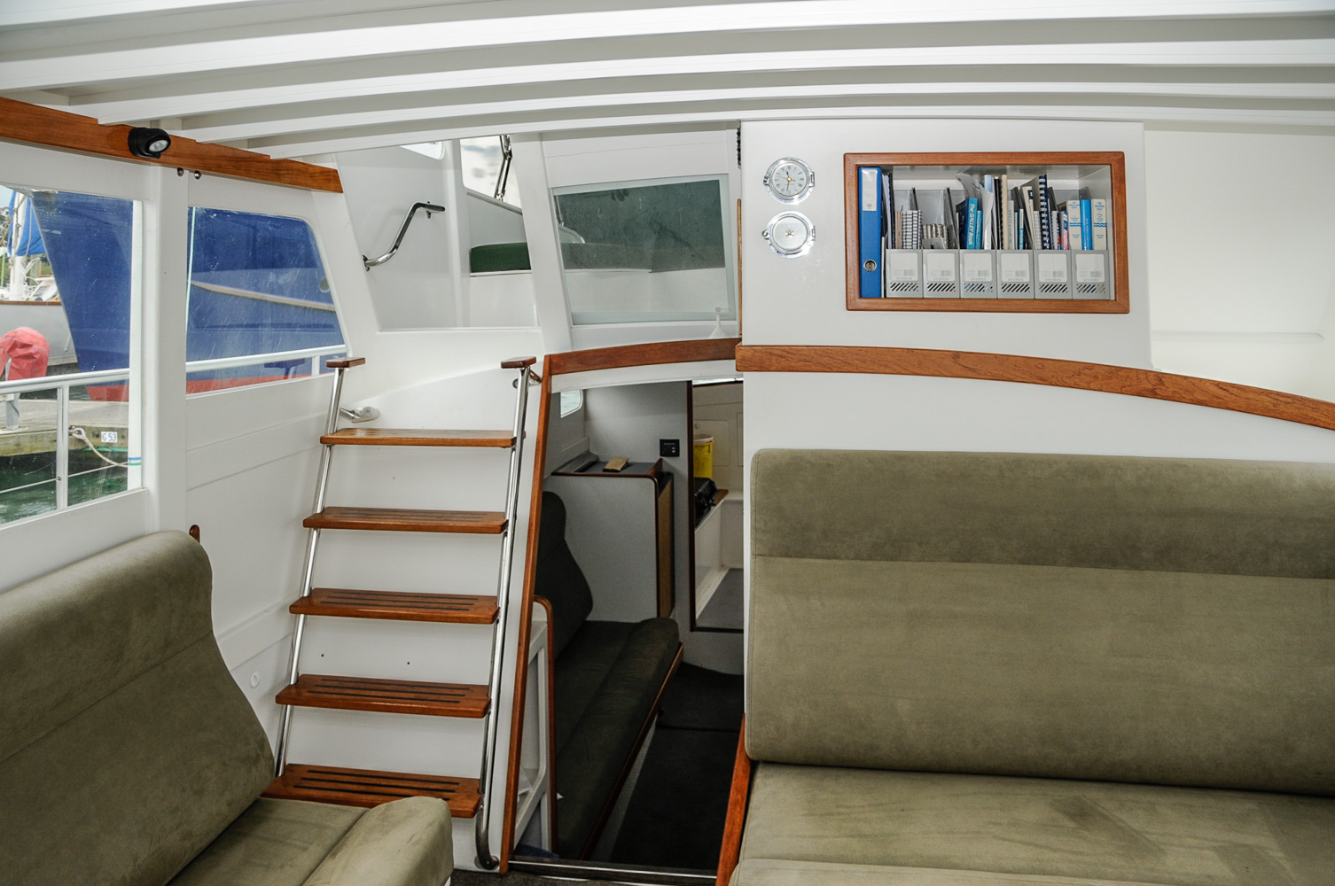 Tamaroa was built by Collings and Bell Ltd for A.E. Fisher of Whangarei. at a date which I have not been able to confirm. At the time of sale I was told that she was the last boat made by Collings and Bell. “They sent her down the slip and closed their doors after her”. When I tried to confirm this story I found that there were quite a number of ‘last boats built by Collings and Bell’ And whatever Tamaroa might be, she was not that. I have been told she was built in 1953 but my enquiries suggested she may have been built in the late 1940s. She certainly was built at a time when Kauri was short and all the larger timbers in the cabin sole above the engines and the cabin sole planking in the stern cabin were Southland Beech. So too were many of the finishing timbers.