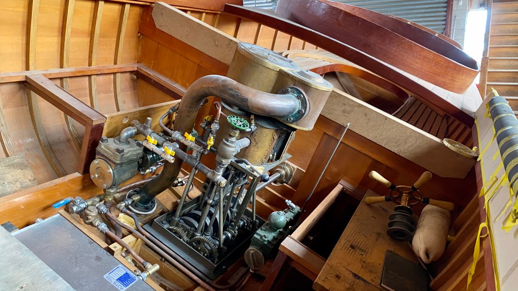 It was great to see that CMcM’s Herreshoff steam launch (below) is coming along – engine installed 🙂
