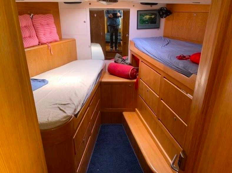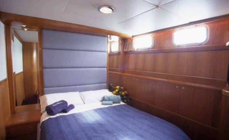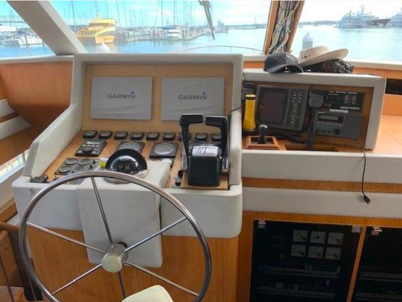 Built in 1975 at the Salthouse yard using 3 skin kauri. Powered by twin 425hp Detroit diesels, giving a max speed of 16knots and cruise of 10 knots. Mana Moana at 59’ in length, has a 18’ beam and draws 4’9″ but what sets her apart from most other woodys of the that length is the volume – she is huge – as an example – 3 cabins, 3 heads and 4 showers.