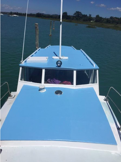 We had an interesting delivery journey to her new home in Whangarei. Left Te atatu at 6 am with a forecast 0-0.5m sea and 5-15 knots, dead calm as we left, at least 1.5 m swell with a breaking 1.0m + chop, a 25 to 35 knot SW breeze blowing the tops off the swells as we crossed Kawau Bay.