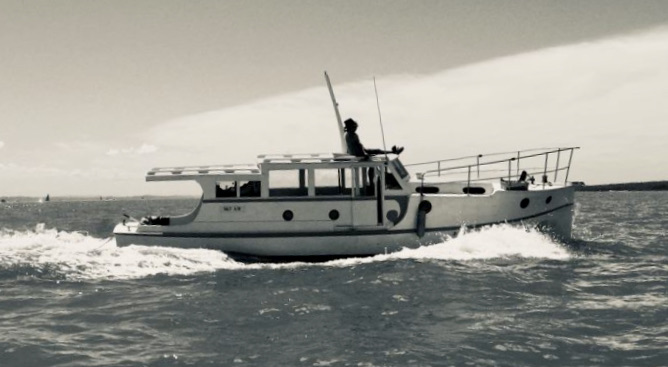 “Well I took the plunge and purchased Salt Air . She is in pretty good nick, although there are many sessions with the sandpaper to come. I was told she was built by Bayley and Lowe and launched in the mid 1930’s.When the previous owners purchased her she was known as Muritia undergoing a refit at Te Atatu and they bought her understanding she had a faulty starter which turned out to be a completely ceased engine They were lucky enough to find a marine version of the LD28 Nissan which is a pearla. They met someone who knew knew her in a previous life then known as Salt Air when she regularly bought mussels over from the barrier. They liked the name and renamed her Salt Air.We had an interesting delivery journey to her new home in Whangarei. Left Te atatu at 6 am with a forecast 0-0.5m sea and 5-15 knots, dead calm as we left, at least 1.5 m swell with a breaking 1.0m + chop, a 25 to 35 knot SW breeze blowing the tops off the swells as we crossed Kawau Bay. My wife became well acquainted with the bucket. I found out why Salt Air survived 80+ years as she punched through at her most comfortable speed of 7.3 knots. Very impressed with her. Ended up running before it a bit in the interest domestic harmony and came around the sheltered back side of Kawau and spent the night in Bon Accord and finished the journey next day. I would love to know more about this beautiful old girl.”