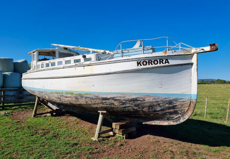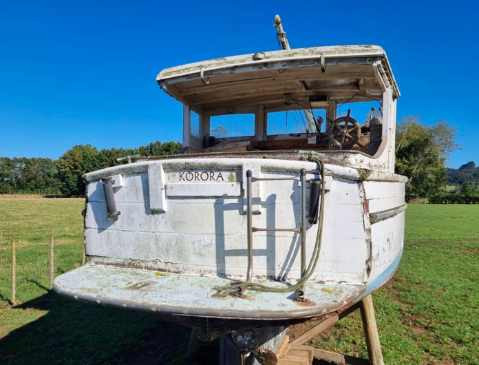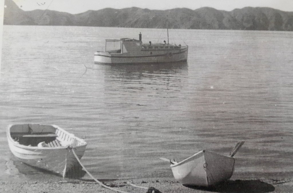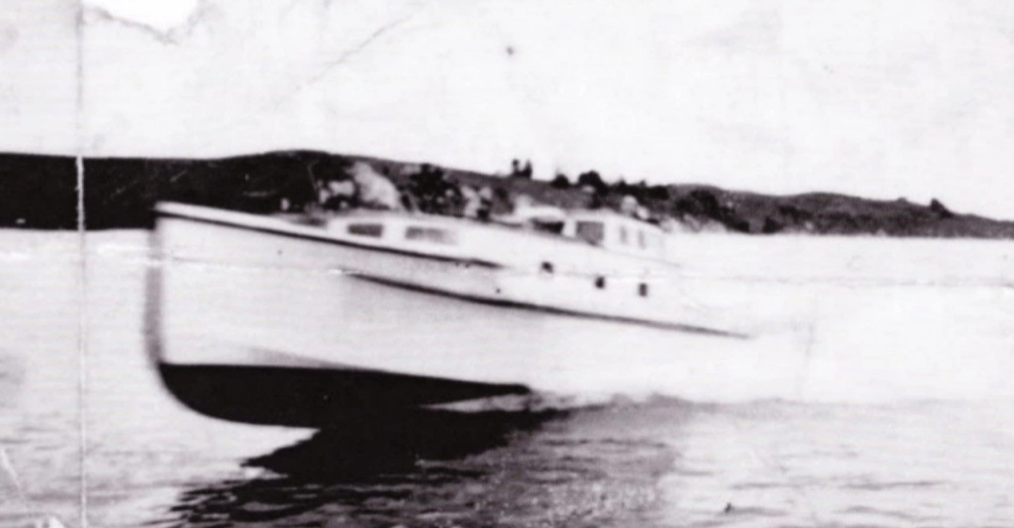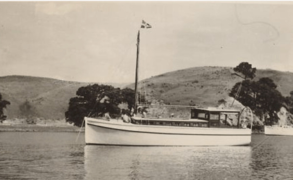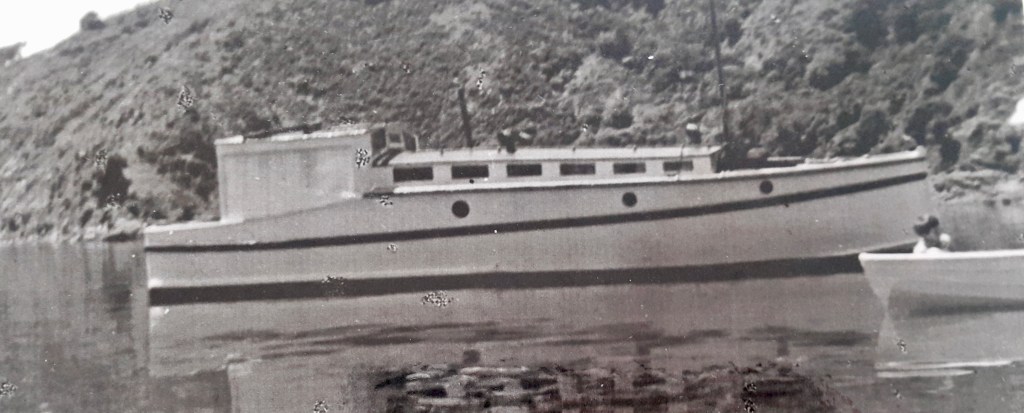 Mark McLaughin ID’ed the launch correctly as Hinemoana, built by Sam Ford, Also known as Princess for a short period. B/W photo below also ex Nathan Herbert