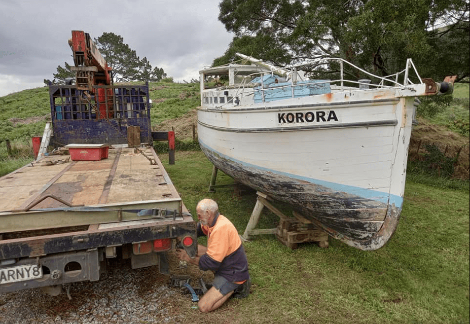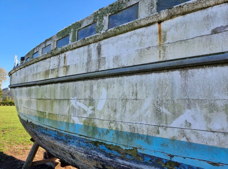 Todays story / quiz is a doozy – maybe a woody will go – thats easy I know that boat, but it had myself and one of the WW guru’s stumped.All I can tell you is the photo was taken in Nelson, a couple of years ago. I have a b/w launching photo, so even if you do not know the boat – check back later to see the b/w photo – you will be very surprized 😉 Email entries to waitematawoodys@gmail.com (photo ex Nathan Herbert)