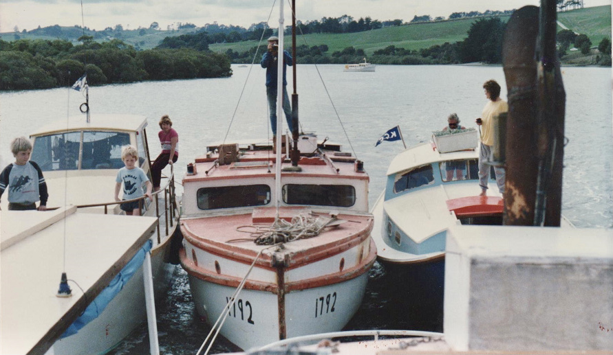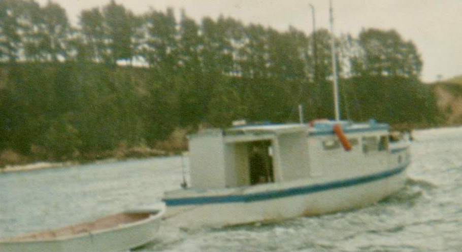 When the Plunkett family bought her, she was fitted with a WWII war assets Scripps converted, Ford V8 petrol engine, , many of which were installed in to NZ boats from 1947 to the mid 1950s, which probably replaced her original engine.This was still in her when the Plunketts sold her (1970’s) into commercial fishing out of Thames. Around this time she had a coamings change, to increase the cockpit, for the long-lining. During the 1970’s > 80’s period she acquired a 4 cyl Ford diesel engine.