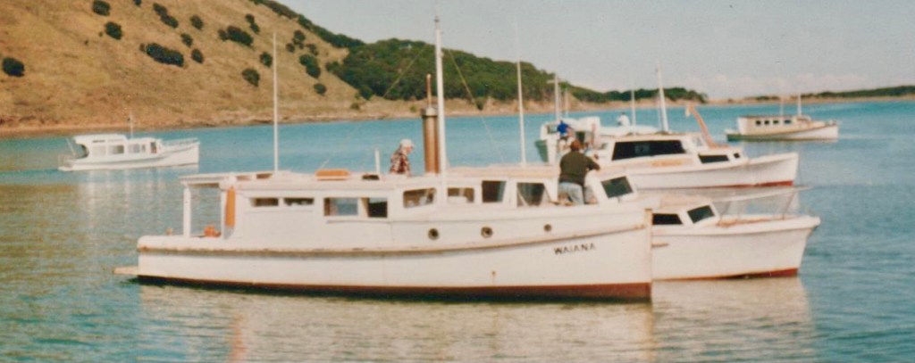 INPUT EX HAROLD KIDD – WAIANA is obviously another rename. I have no record of her as WAIANA until 1957 when she was listed as an auxiliary by NZ Coastguard. Then in 1961 she is listed with APYMBA under 251 and owned by Gerald Clark with a 40/50 Fordson diesel. Her dimensions were given as 31.1′ x 9′ x 3.3′.