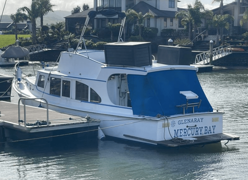 The 42’ launch Glenaray was built in 1942 by Shipbuilders in Poore St, Auckland. She was built to be a WW II mine clearer, but never saw service and was converted to pleasure use. Powered by a 180hp Ford diesel. She last appeared on WW back in 2018, link below – she was also looking for a new owner then – https://waitematawoodys.com/2018/05/01/glenaray/