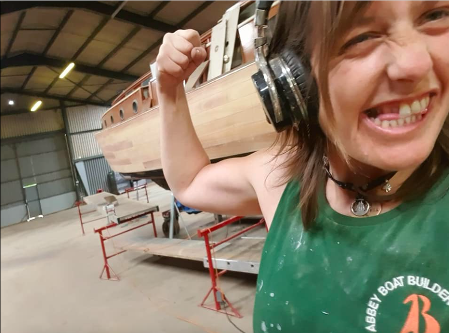 The team at Abbey Boat Builders is led by traditional boatbuilder Abbey Moyneux (photo below) – read more about Abbey here http://abbeyboatbuilder.co.uk