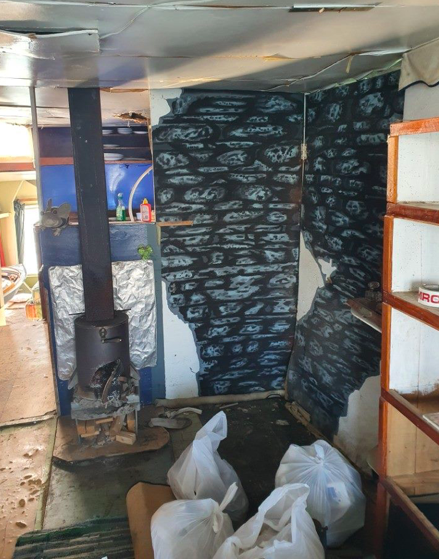 Seeing her last week from the Pakiranga high bridge, it seam that the front half of the cabin is missing.