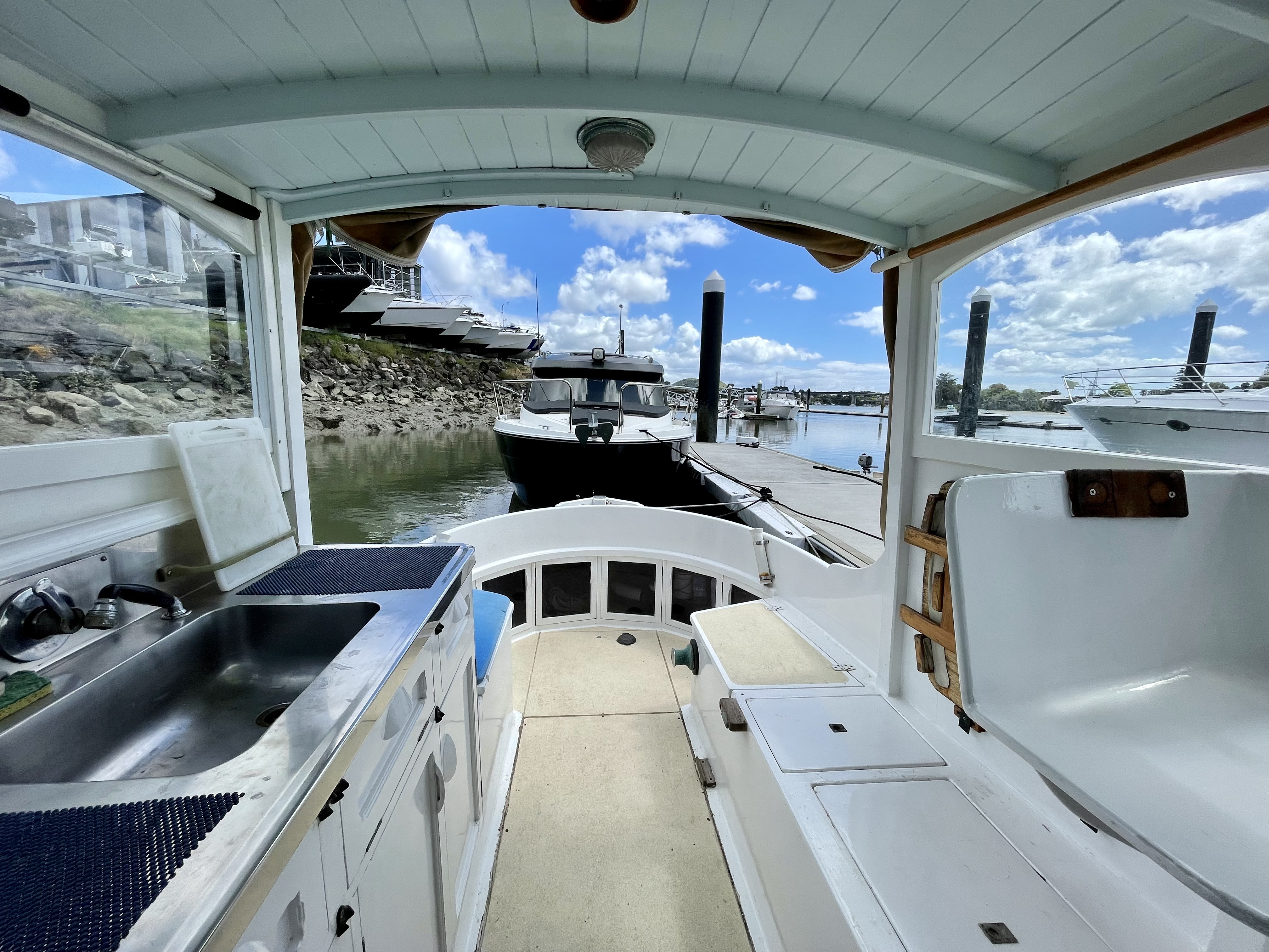Kerry contacted me several months ago and said “I’ve made the decision to pass the lady onto her next custodian, so once we escape CV-19, can you sell her” – so woodys Lady Adelaide is now on the market. If you are looking for classic launch that you can just step aboard and be boating this summer – this is the woody for you. Marina also available for rent. Expressions of interest to the Wooden Boat Bureau c/o waitematawoodys@waitematawoodys