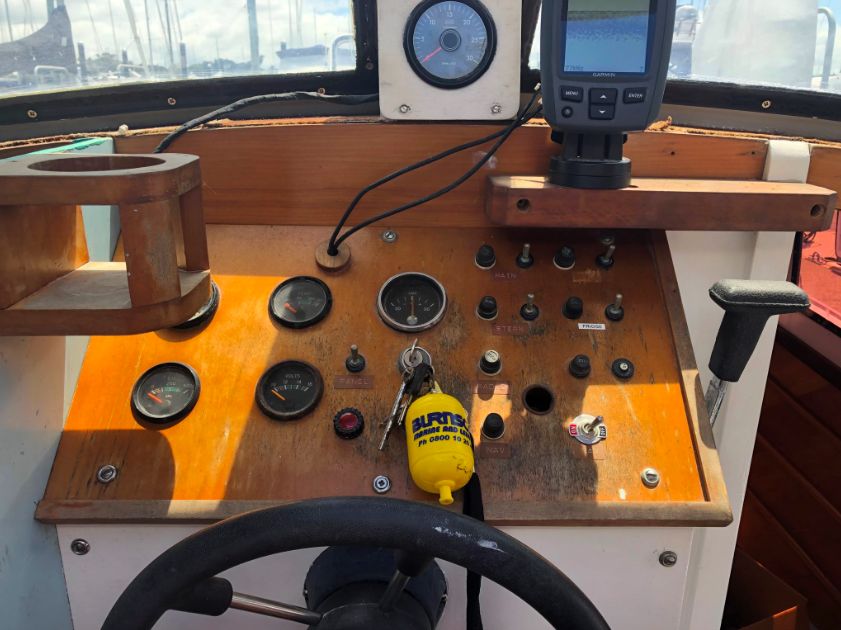 Todays woody is double diagonal kauri with f/glass on outside, and is 26′ in length with a beam of 8’ and draws 2’. The engine is a Ford 60hp diesel. Thanks to Ian McDonald for the tme heads up. WW would like help to uncover more on her past.