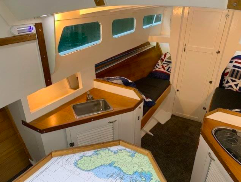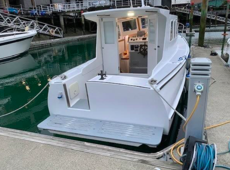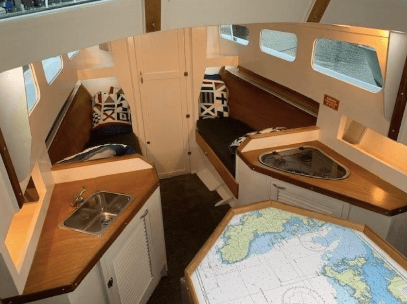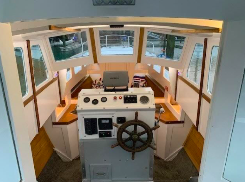 Powered by an 80hp Ford, she has a beam of 7’11” and draws 3’11” – and that is all we know. Given the level of presentation she looks to be a recent recipient of some serious TLC.