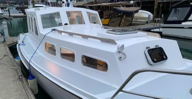 Powered by an 80hp Ford, she has a beam of 7’11” and draws 3’11” – and that is all we know. Given the level of presentation she looks to be a recent recipient of some serious TLC.