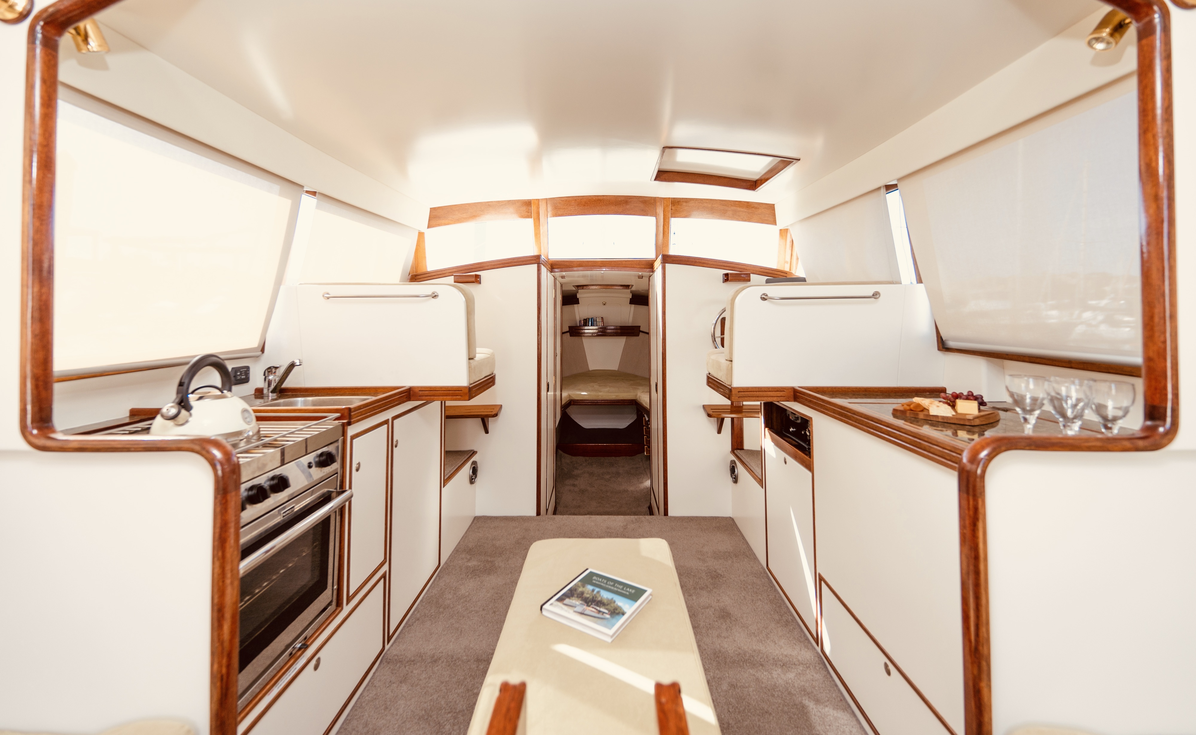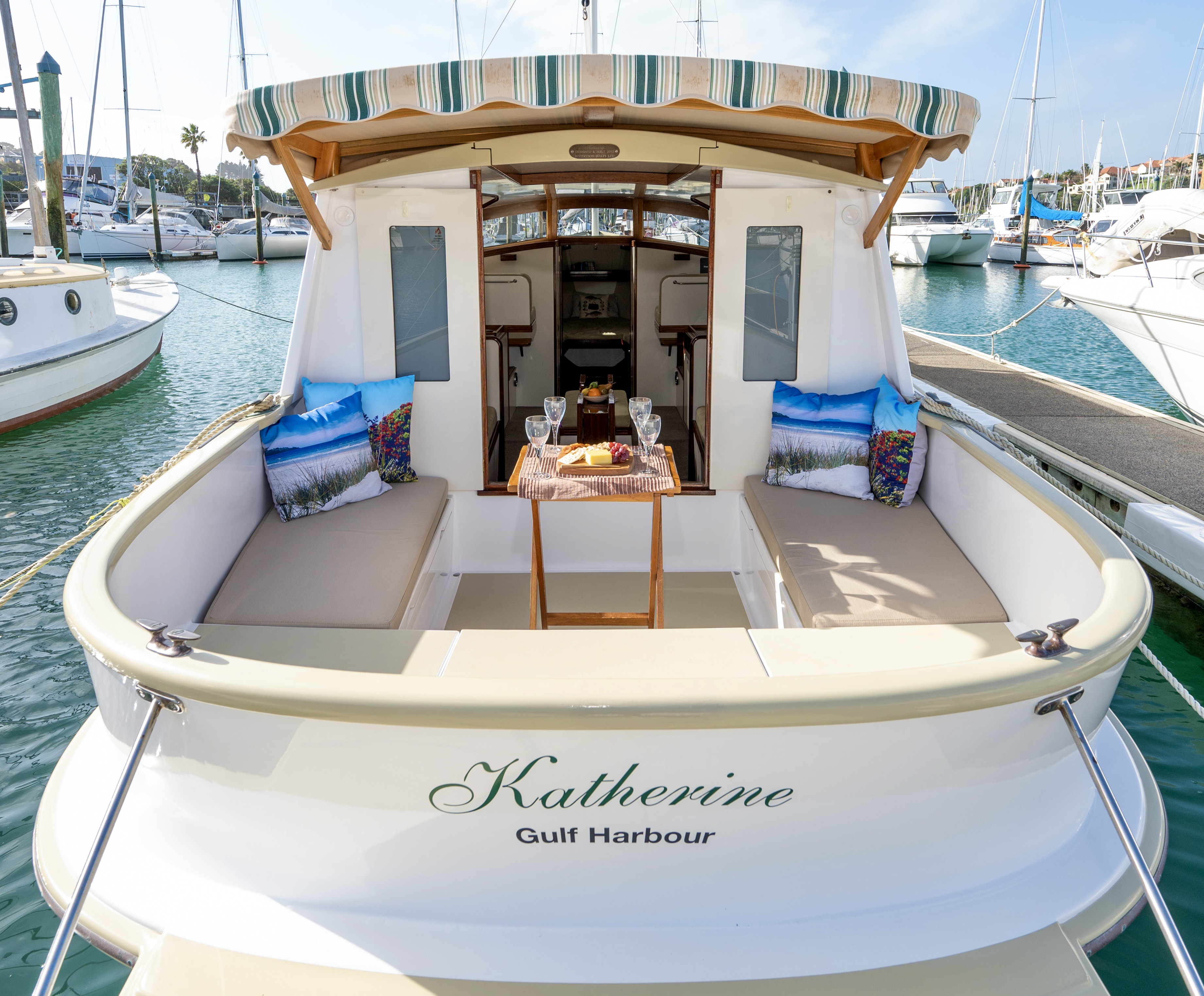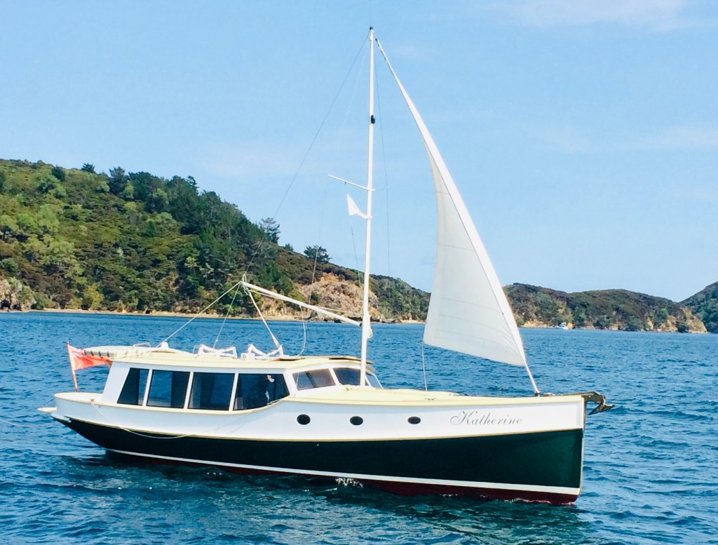 Back in Feb 2020 I wrote on WW that launches like Katherine would be the future of classic / spirit of tradition boating – in a nutshell – stunning looks, voluminous interior and low maintenance. Katherine was built is 2013 by Robertson Boats, her design lead by Conrad Robertson. But her roots go back much longer than that – back to the Hokianga Harbour where a workboat played its trade, the hull of which ended up in a farm shed. The hull was moved to Robertson’s yard in Warkworth, where a mould was taken off the old hull, as an aside – the old hull was refurbished and repurposed as a charter steamboat.