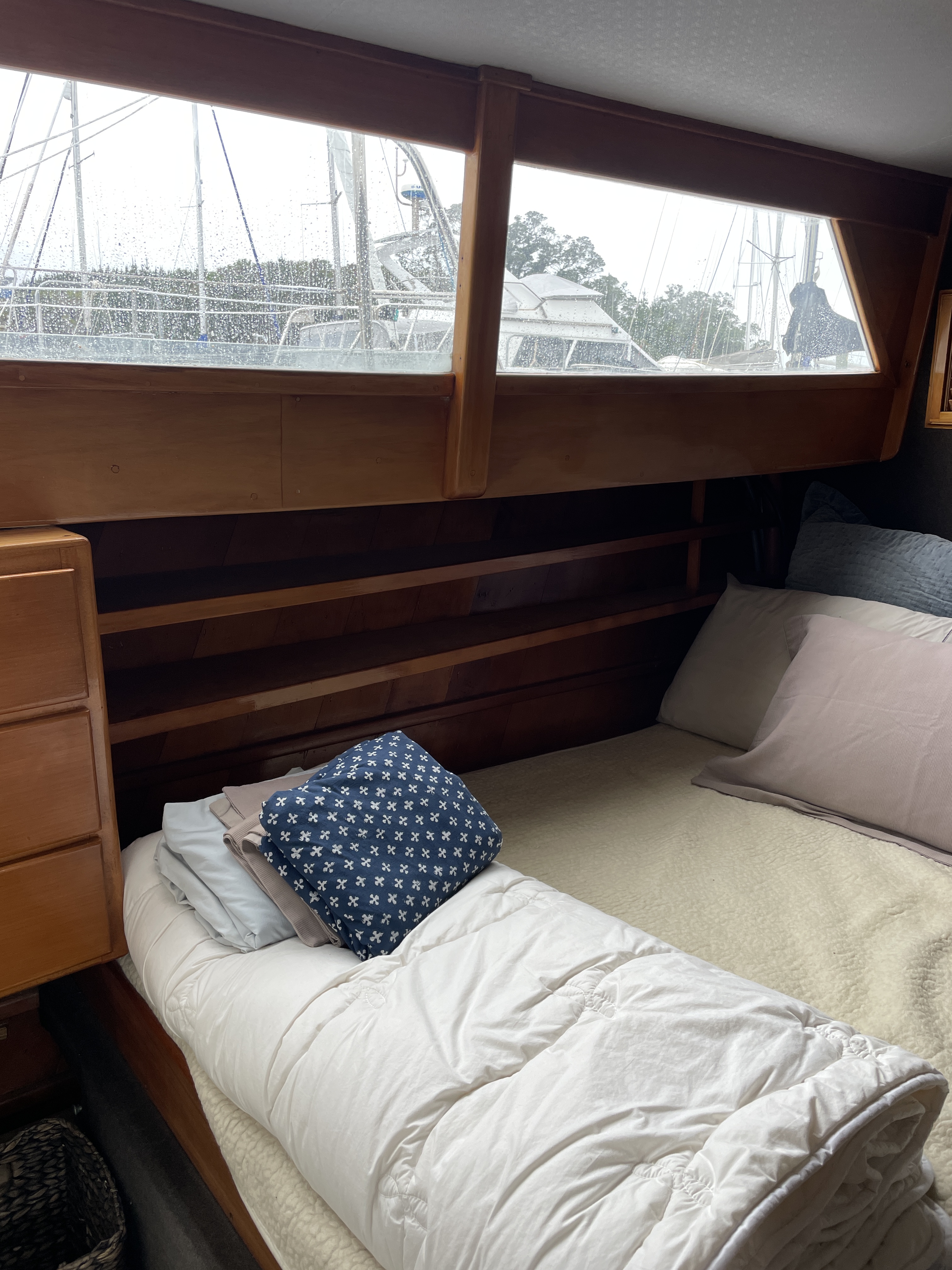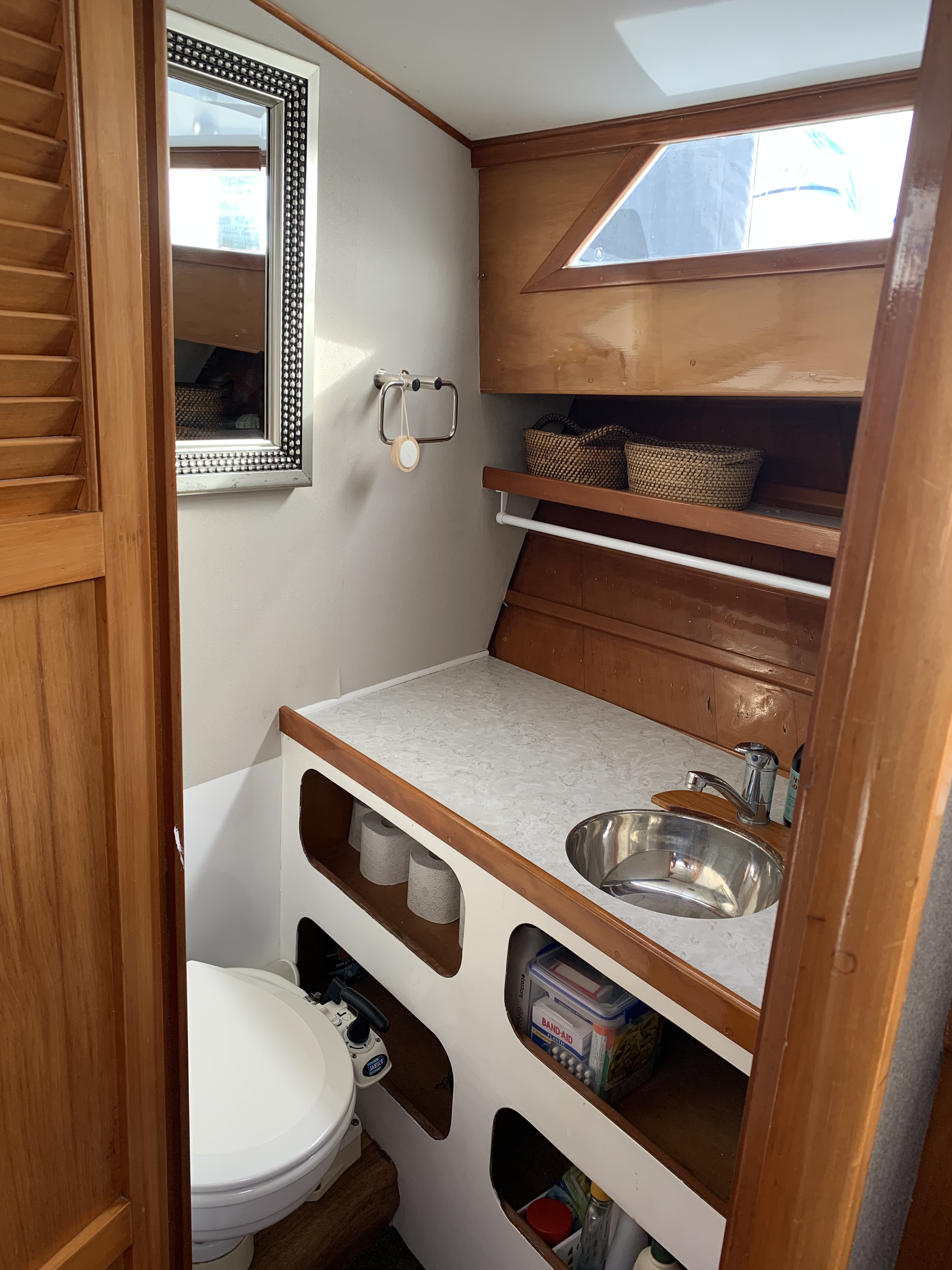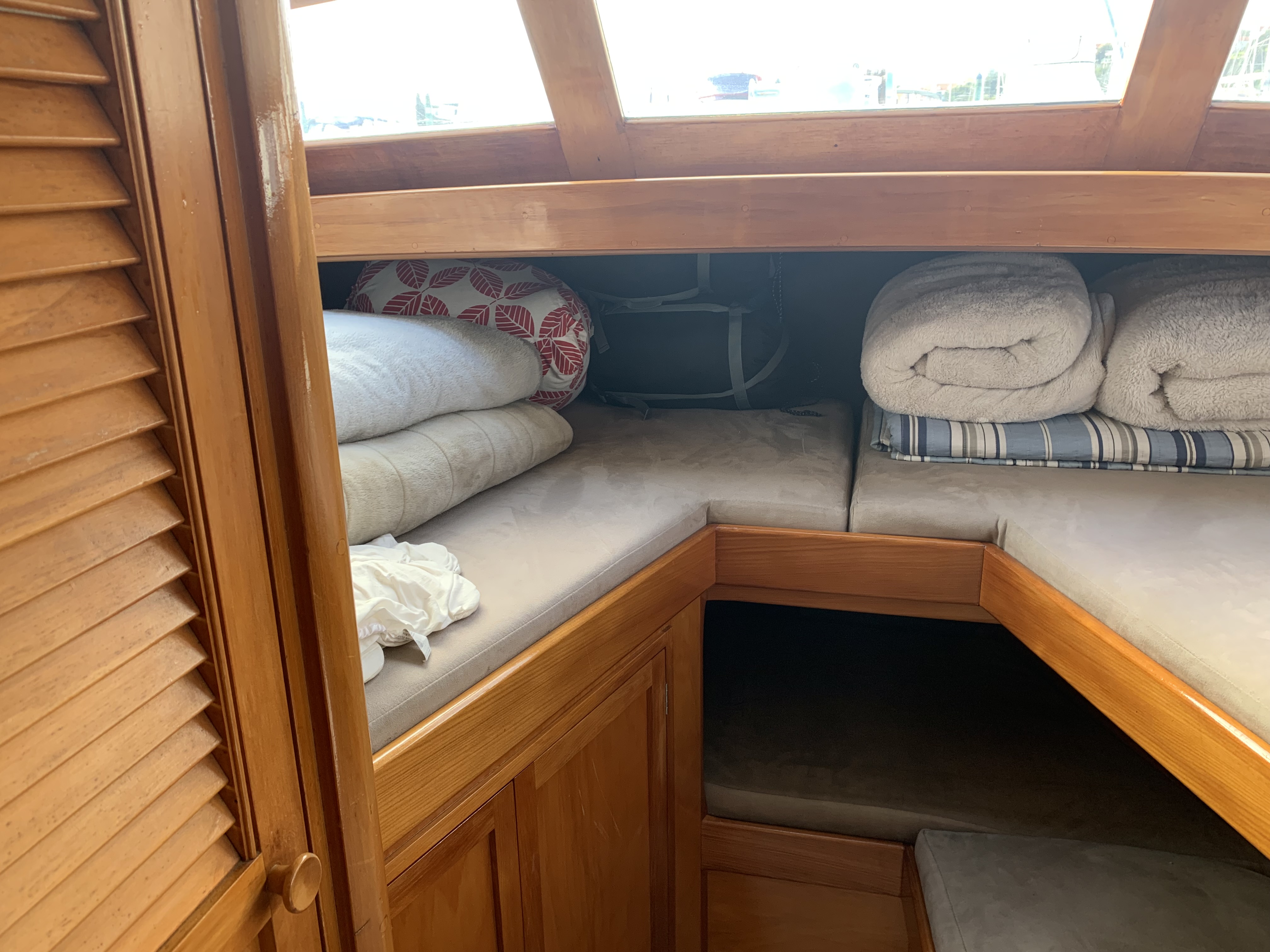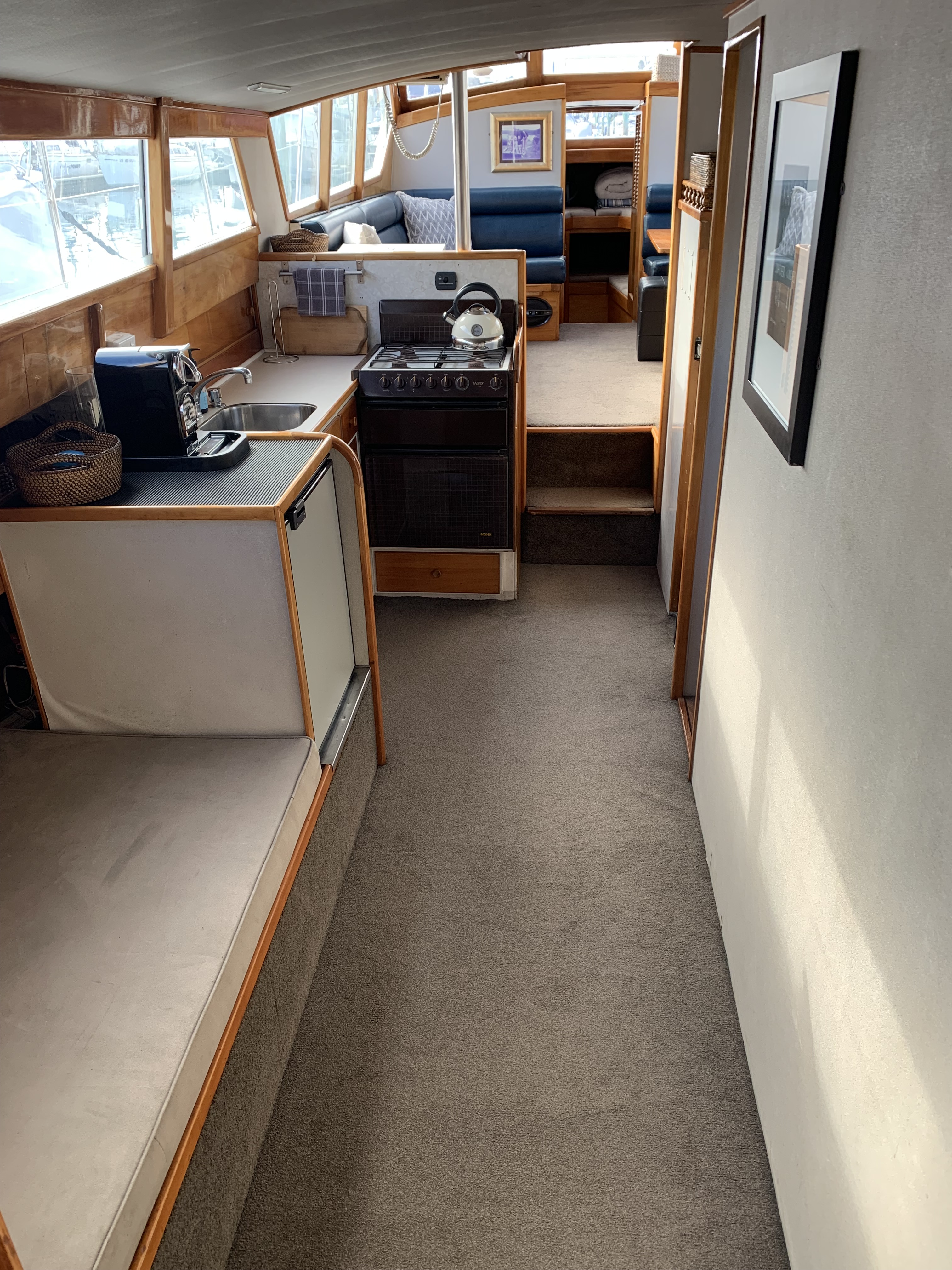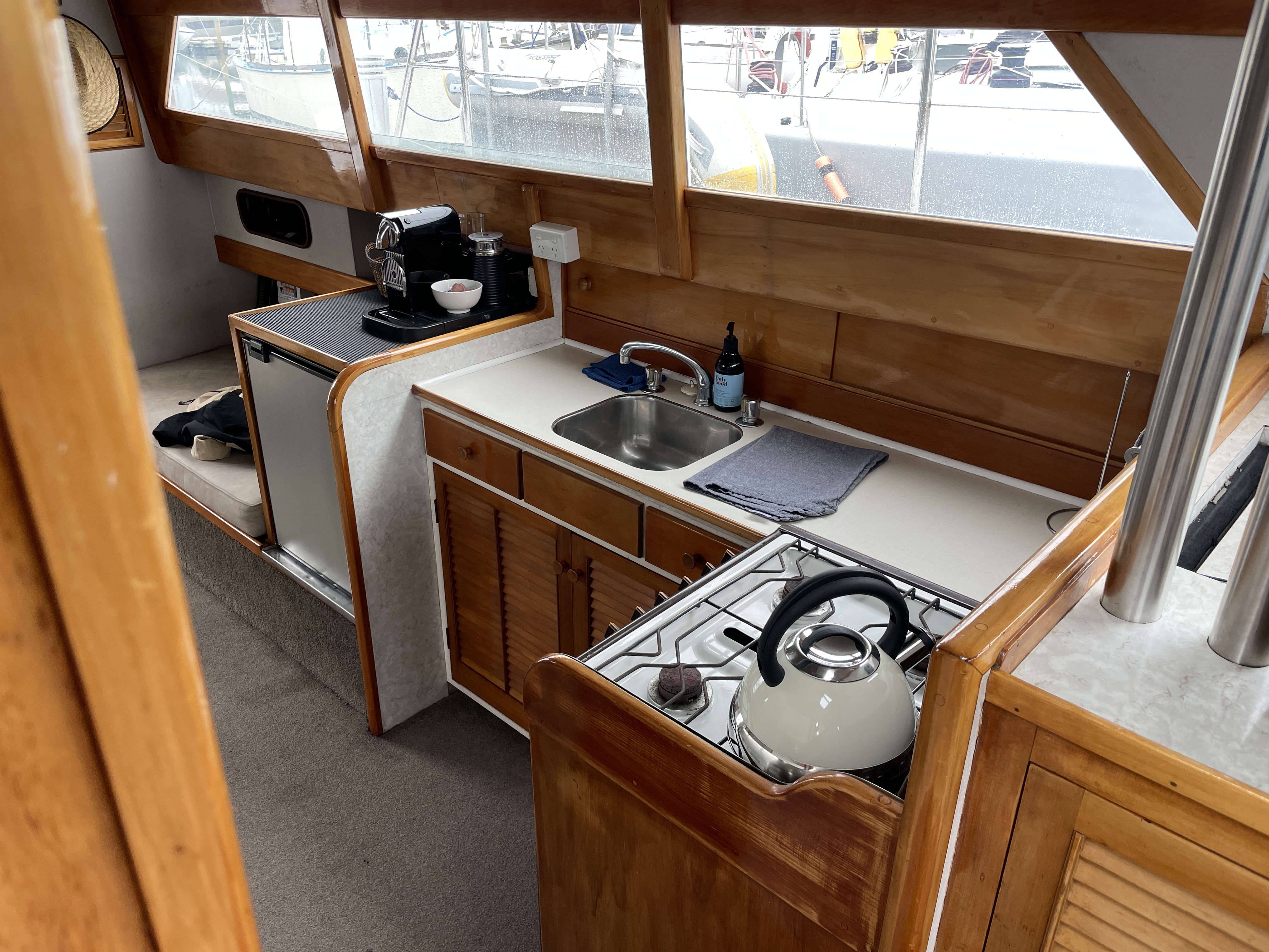 Get up and go is via a Volvo TAMD 70, derated from 380hp to 300hp. This gives the her a very respectable cruising speed of 14 knots, and tops out at 19 knots.