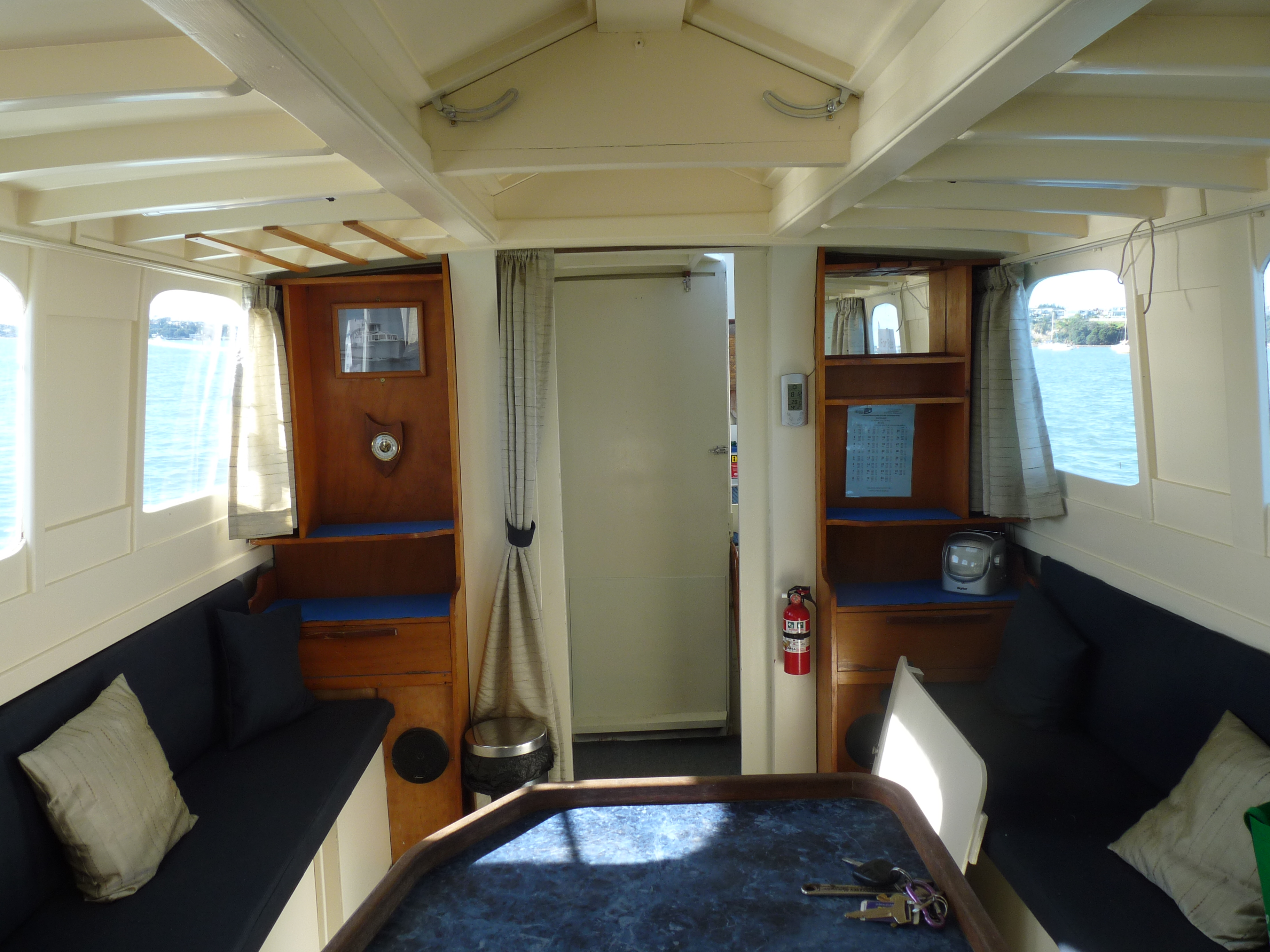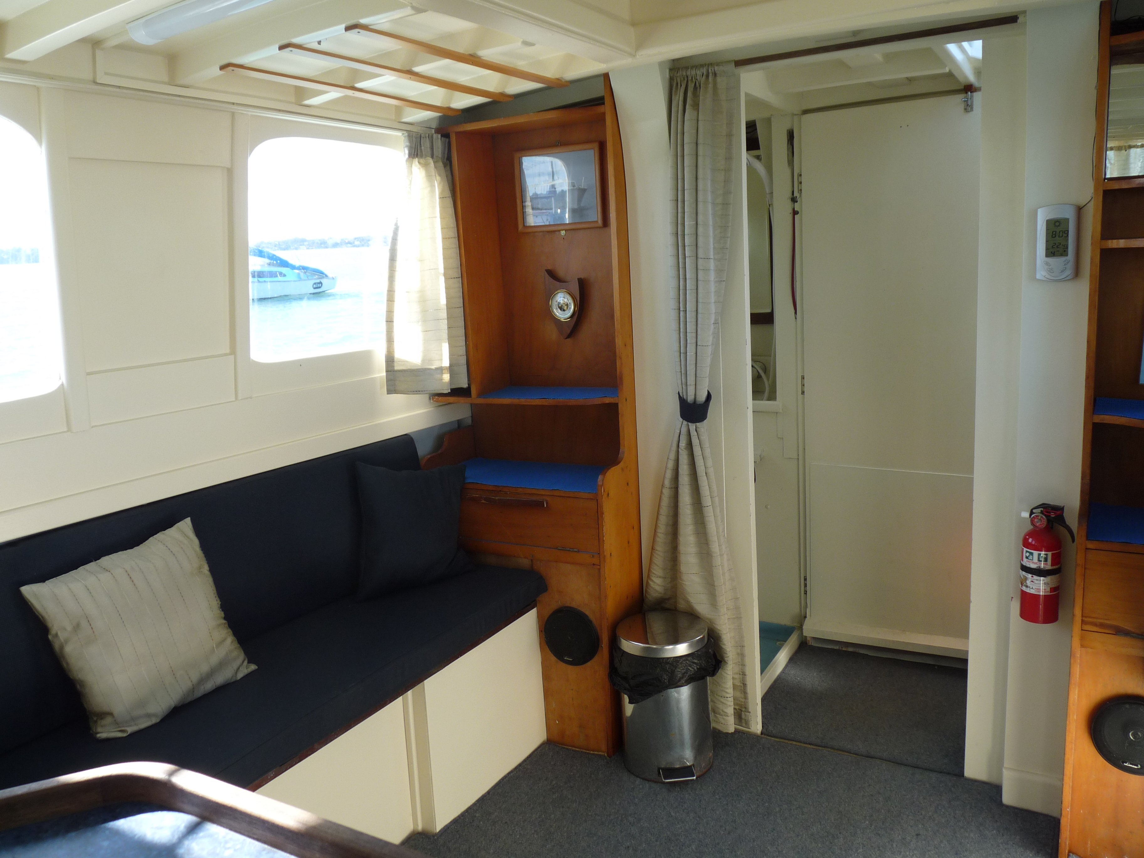 The BEL AIR was moored at Okahu Bay, in the later 40s & early 50s, just off the end of the fuel jetty looking out to sea, to the left hand side,& right in front, & quite close in, to where the Royal Akarana Yacht Club Building now stands. — (it was not built then). –She had fawn/cream painted coamings at that time, but otherwise is more or less as I remember her,