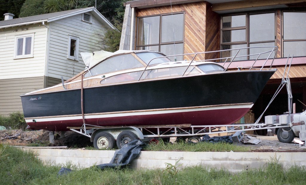 Bay of Islands photographer Dean Wright took the above photos of the Clipper 23 – Black Tulip back in 1983. The location was School Road, Paihia.