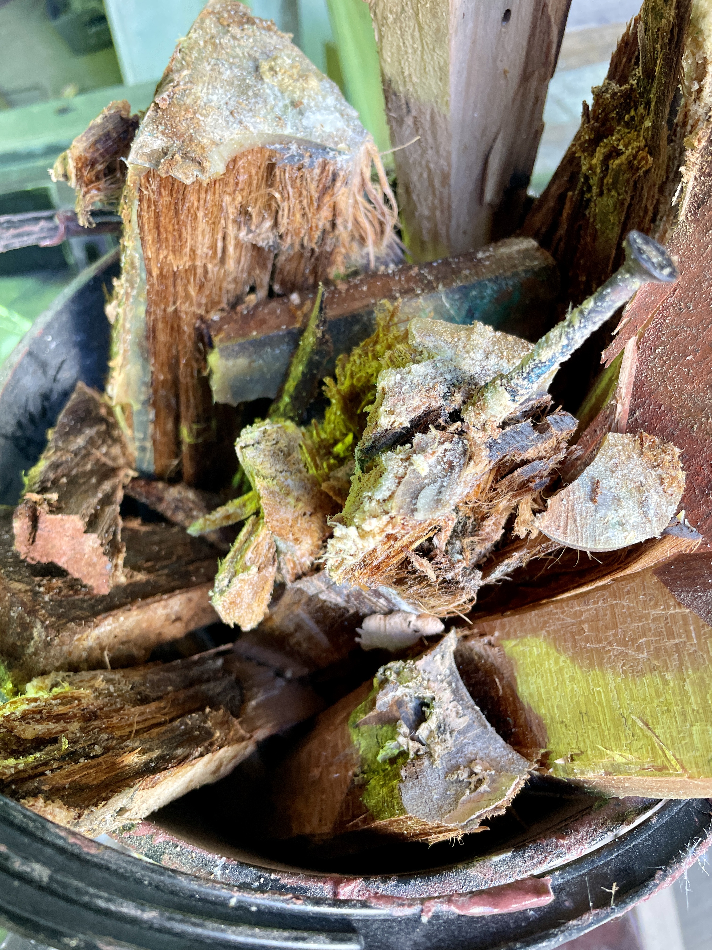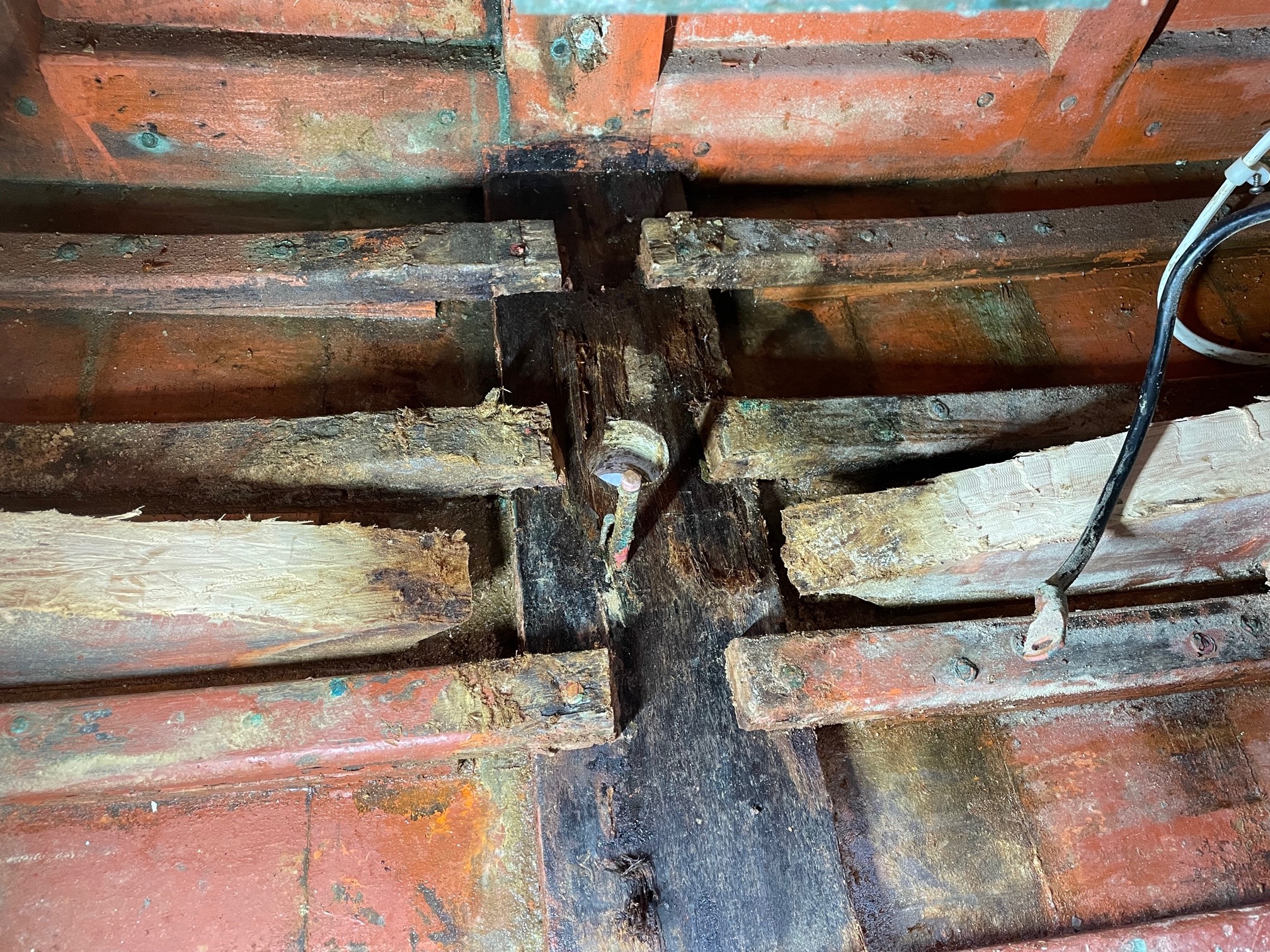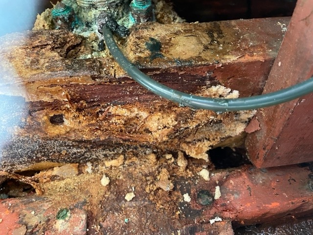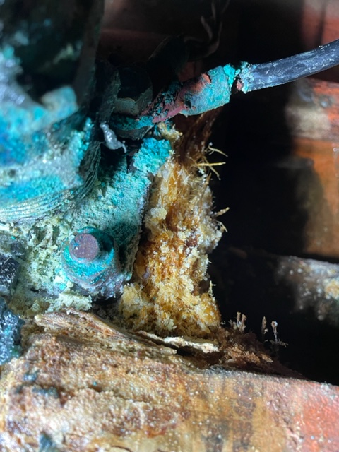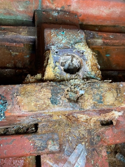 If you need more proof on why not to bond your wooden boat and attach anodes – have a look below – luckily it was very localised. Very scary, the rudder shaft and surrounding area was VERY close to just not being there and you can guess what would have happened.