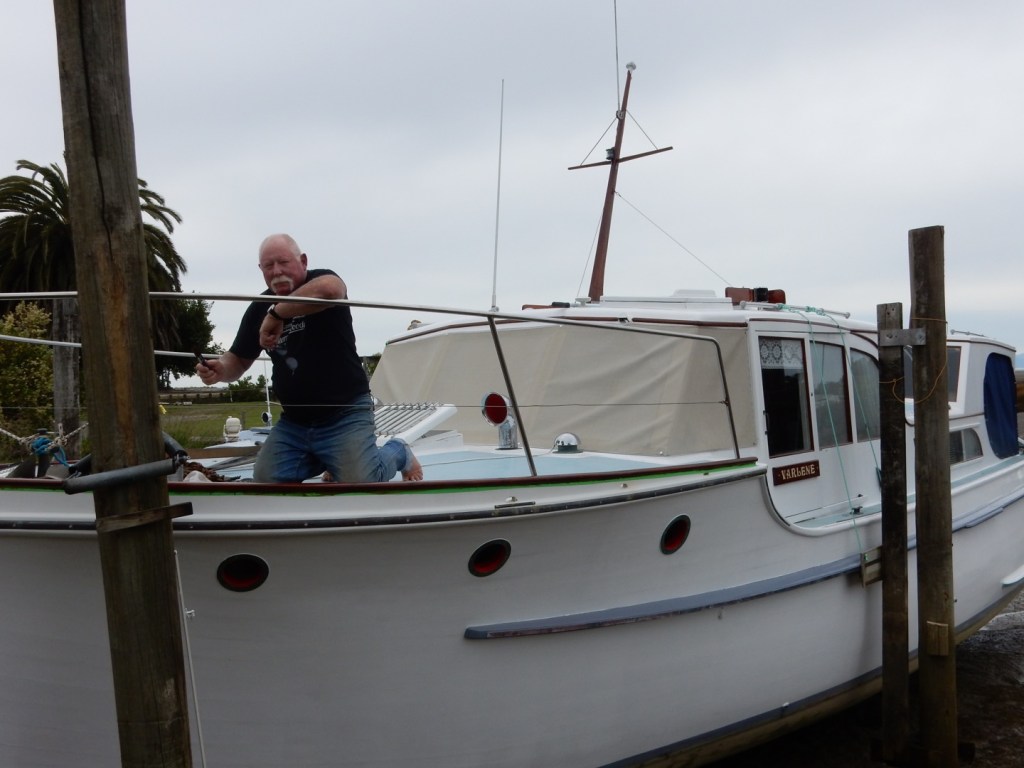 In the photos we see Varlene getting some TLC, as an aside looking at the finish on Varlene’s rail and the tin – it looks like at last Cetol is an ok finish – used to be a horrendous orange/yellow colour, similar to what actor George Hamilton used to use as fake tan (photo below)