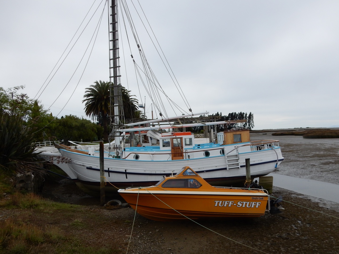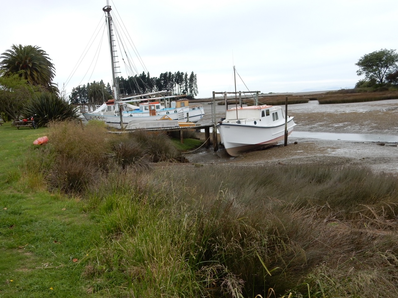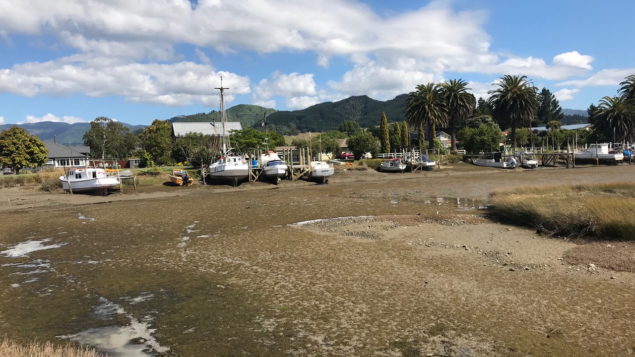 Not long after unpacking the bags he was heading down to the Riwaka riverside marina, close to Motueka, Tasman. As the photos show the area is seriously tidal and John’s visit was at low water.