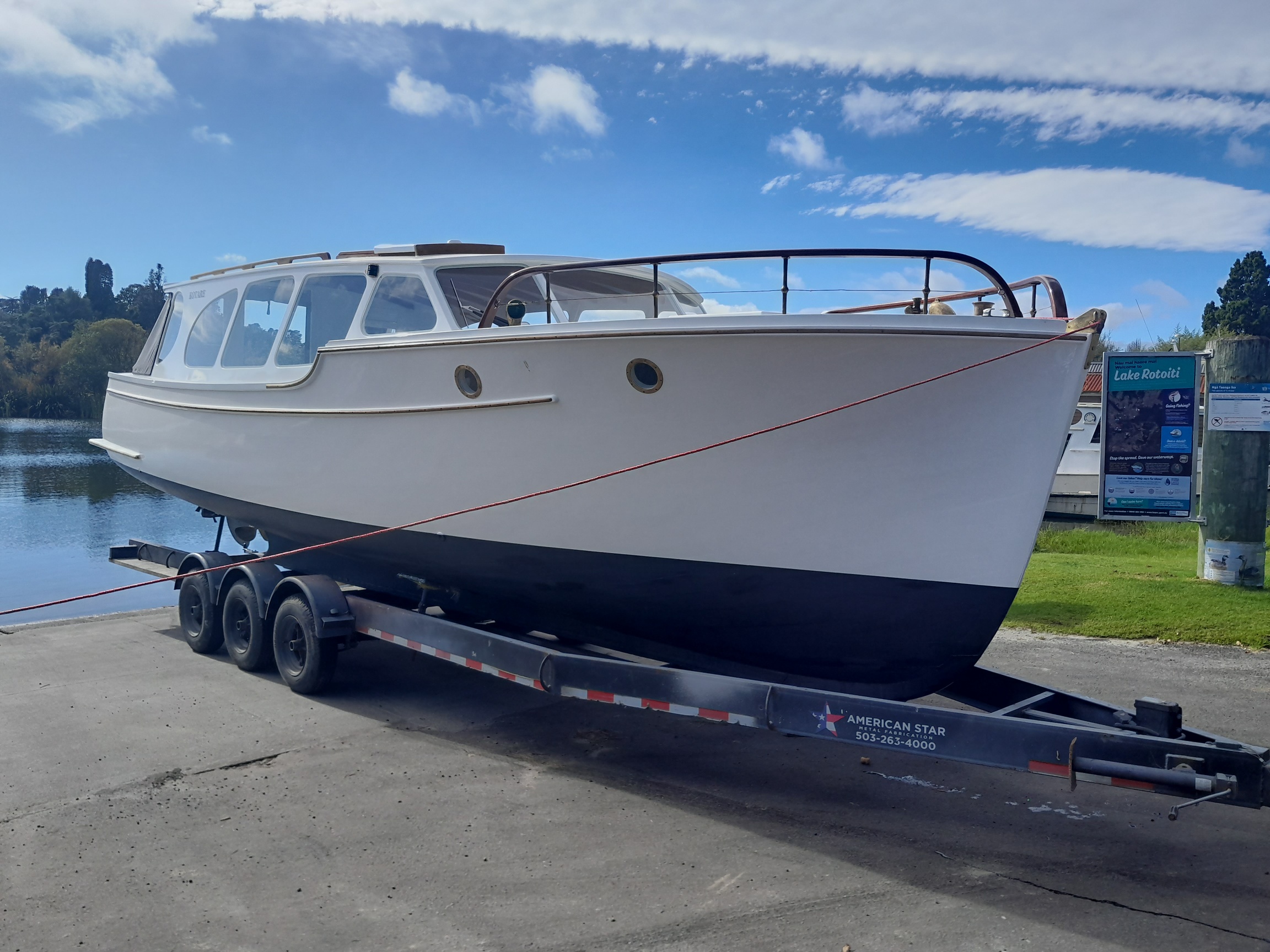 Last week Alan Craig advised they had just relaunched Kotare at Lake Rotoiti. Her owner had just finished the interior refit in his shed inTe Puke since Alan and the team at Craig Marine finished painting Kotare last year. Alan commented that she looked pretty sharp. The work had been done in a pretty confined space and they hadn’t really been able to stand back and look at it till now. A new 35hp Beta diesel has been put in to replace the BMC.