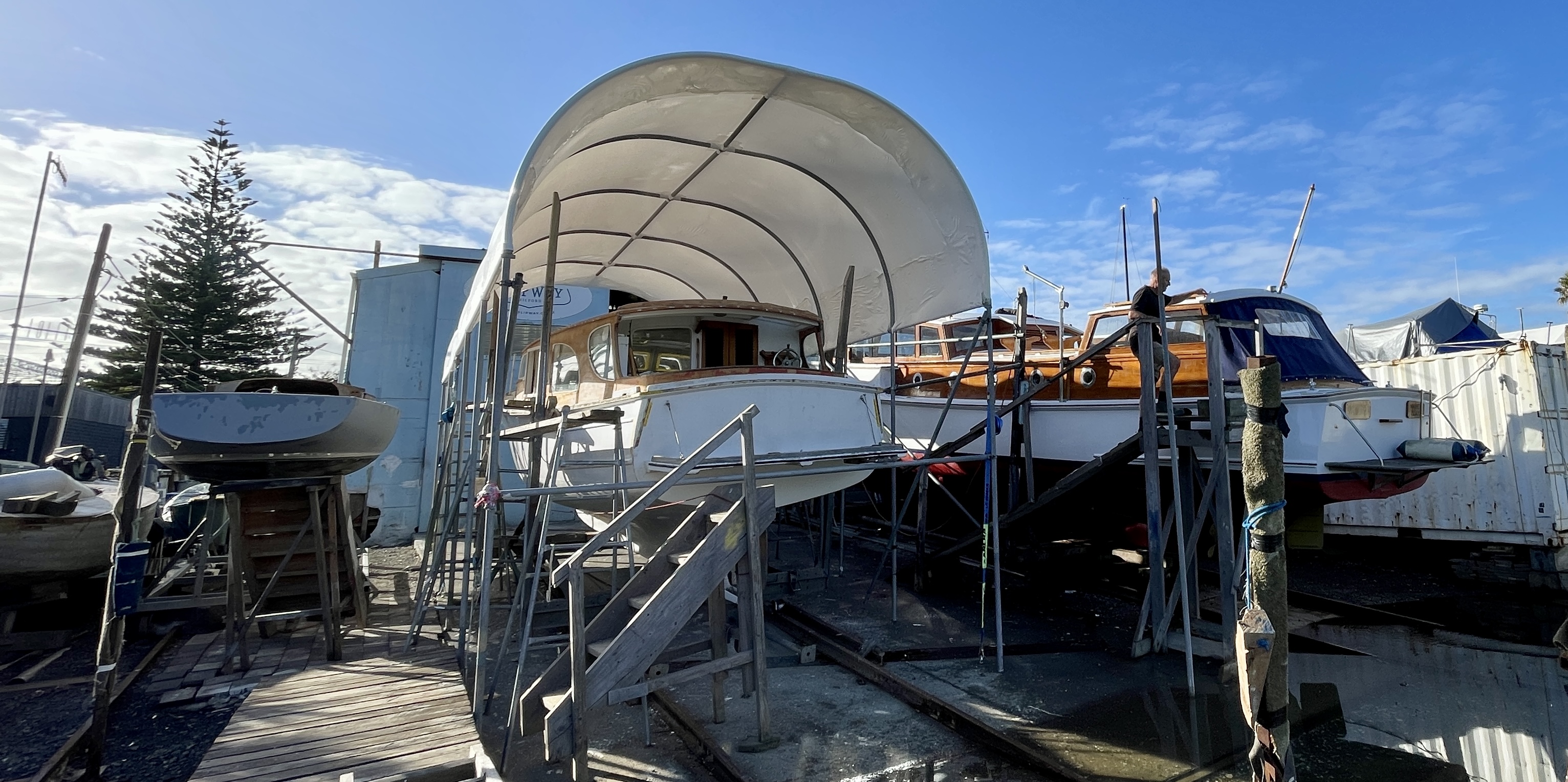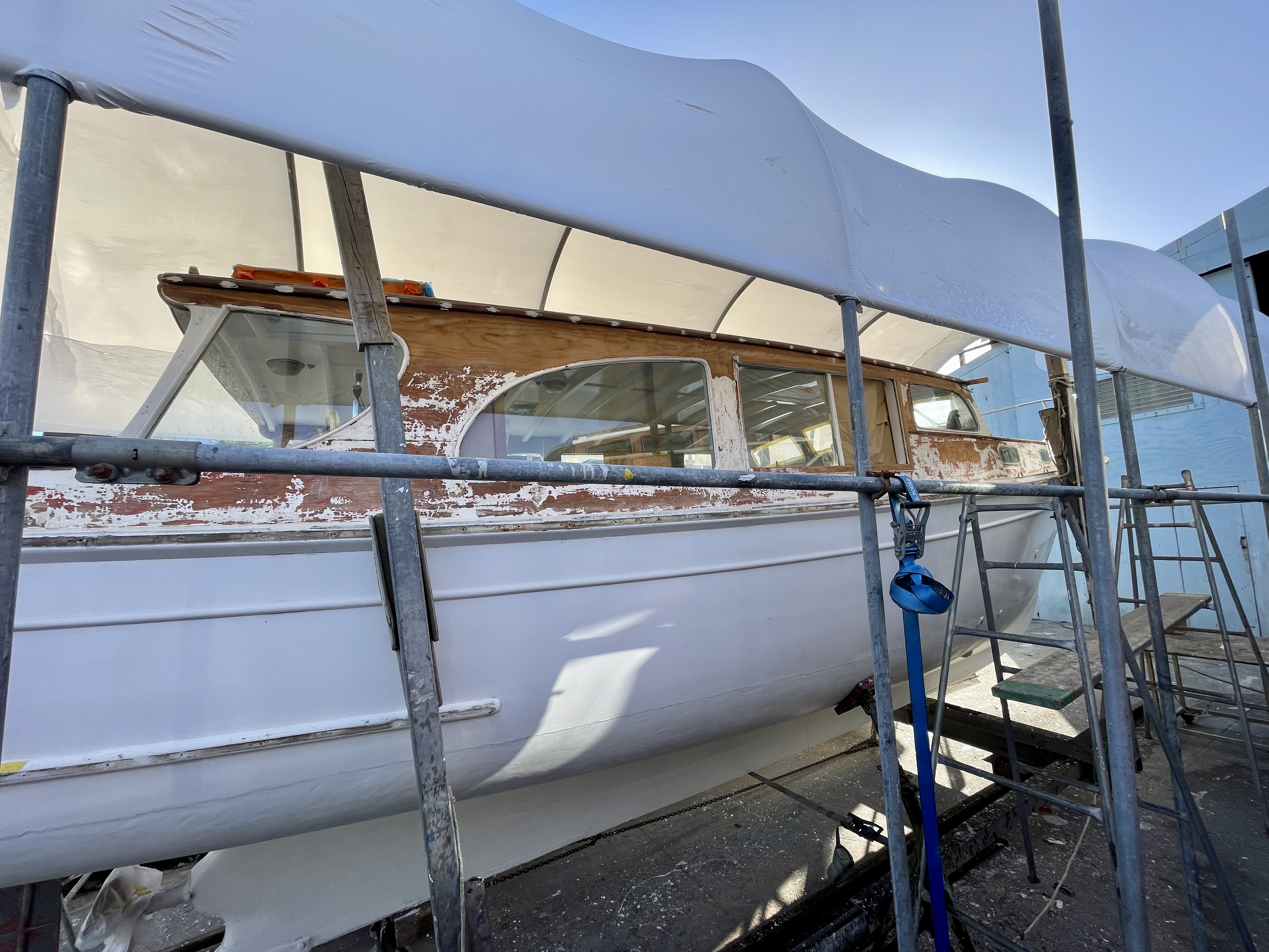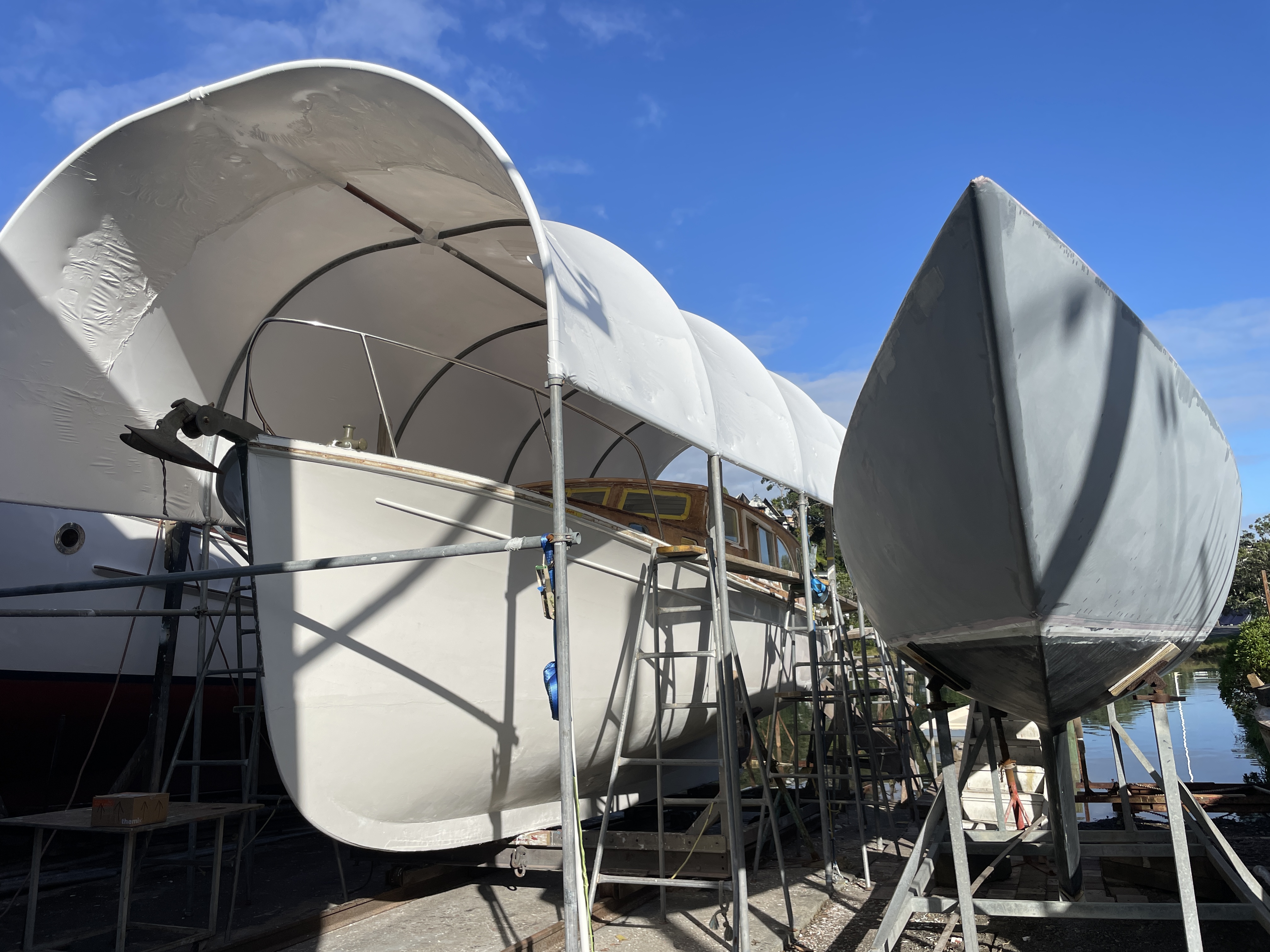 Endeavour – the 1958 A Couldrey designed, Brin Wilson built launch, is part way thru her re-fresh. Fingers crossed the coamings get the Uroxsys treatment 🙂