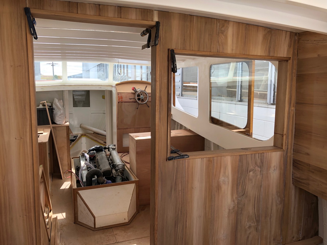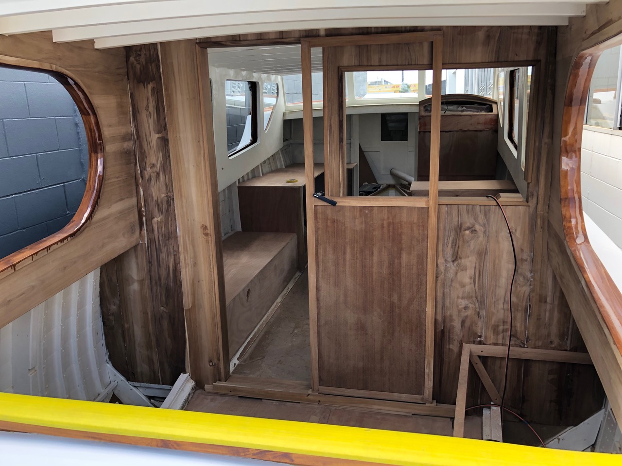 Fast forward to early March 2023 and Ngahi had just emerged from Glen Burnnand’s shed after some serious TLC that included – redoing the exterior with all new teak cabin sides, new glass, rebuilt swim platform, new teak sliding windows and detailing. Owner Ash Weeks is very cock-a-hoop with the work.Ngahi was whisked off to Ash’s factory for a completely new interior – Ash’s trade is high end commercial interior cutouts so we expect to see a wow interior.