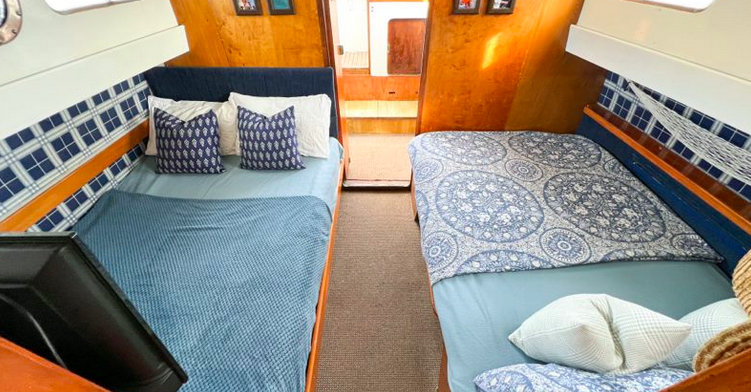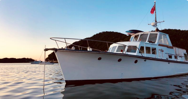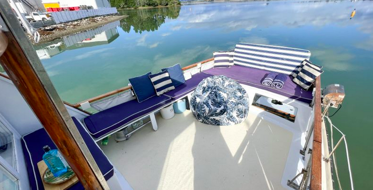 Putting this to one side – Triton V is 45’ in length, powered by twin Ford 120hp diesel engines, giving her a cruising speed of 8.5 knots.