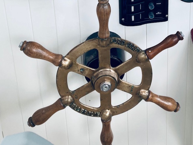 The hydraulic lines to the rudder have been retained to give an authentic resistance, along with the engine/ gearbox throttle, and the winch with its loom ( disconnected as the 100amp draw is not available, but could be reinstated with a closed gel battery if we ever wanted to).
