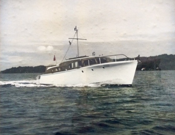 Steve was having a review (tidy up) of some of the families old photos and came across the above.  Steve commented that the first two were taken by the editor of Seaspray magazine who did an article. The photos were taken in Islington Bay. The third photo was taken going up the harbour on an Auckland Anniversary day very soon after the boat was launched so probably about 1958 as there was no boot top. Also there were no bow rails which were laminated up sometime latter. Also note the family were dressed in Whites which was the custom of the day.