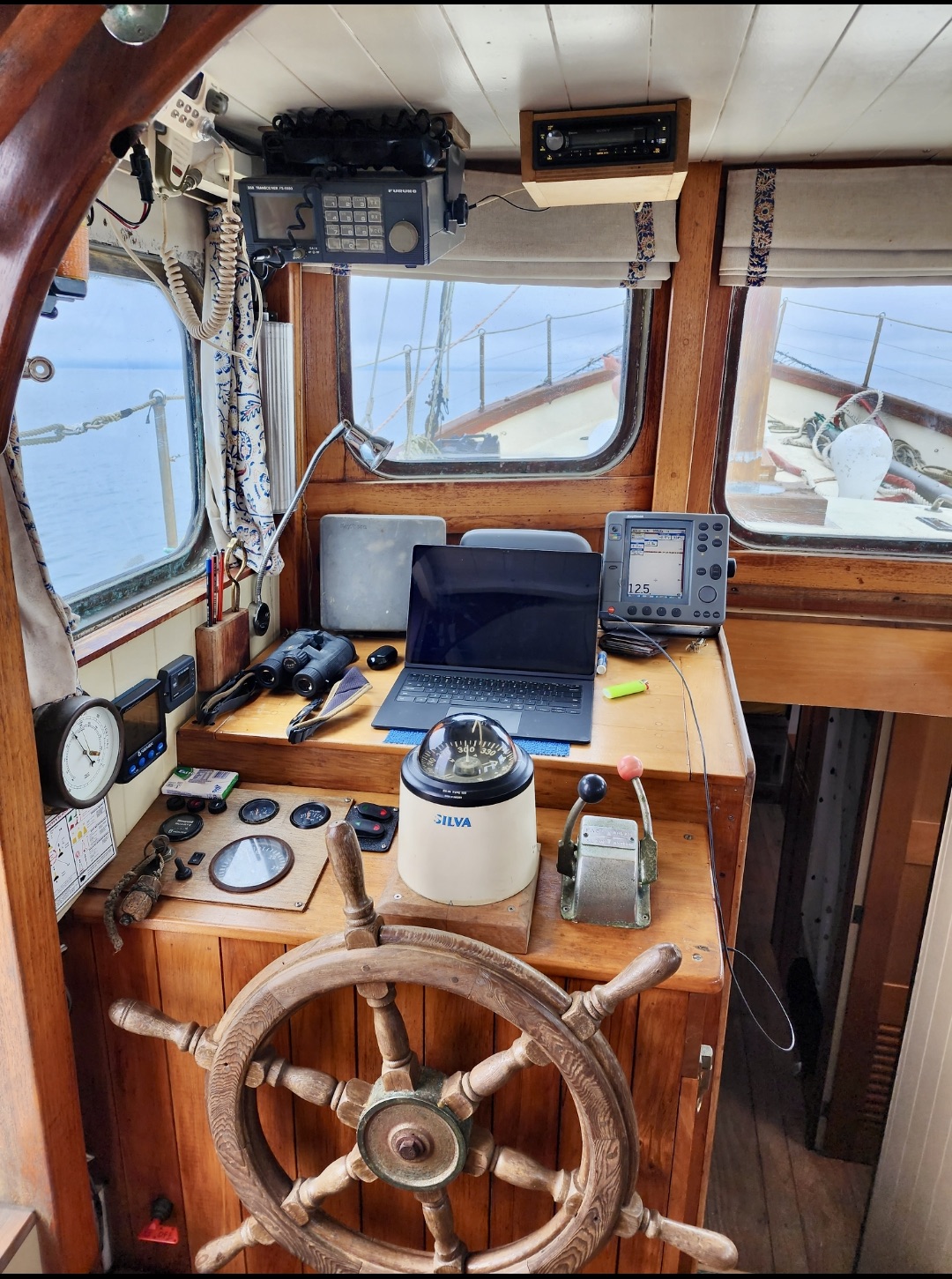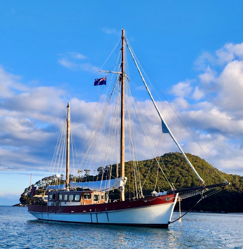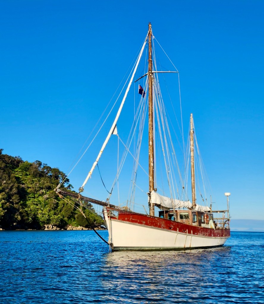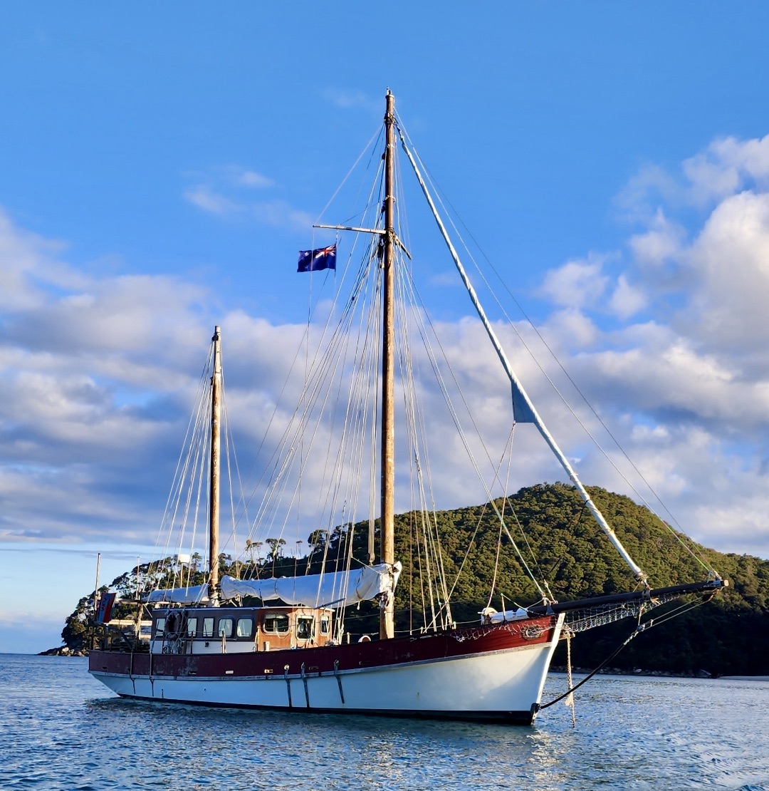 Story goes that she may have been built c.1920’s and built in Helena Bay, hence the name. She’s made from 1&7/8” thick kauri. When the wind is off-duty there is a Perkins 6.354 to help the forward motion.