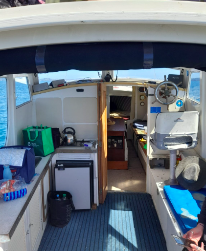 We do not know a lot about her other than. – designed and built c.1956 by Dave Jackson, using kauri planking. Approx 32’8” in length and powered by a 6cyl. Ford diesel engine.