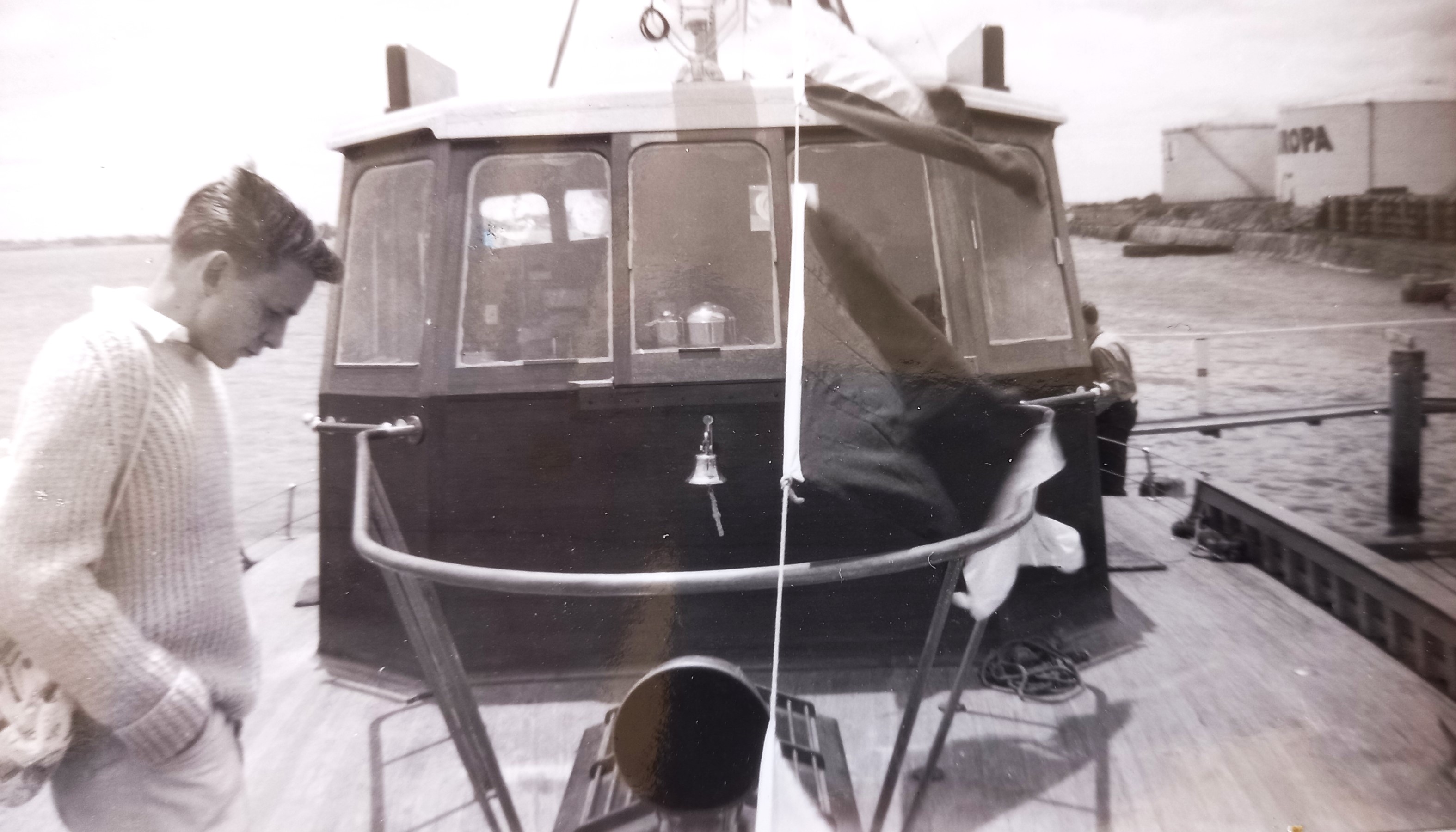 Paul and I discussed the pic -was he one of the M.A.G.S lads who were adrift that day -without a leave pass. He is very well-dressed and he has that bag slung over his shoulder. Also his hairdo is pretty cool. So I’d reckon he was news media or a salesman in the marine trade -she had some expensive kit on board.