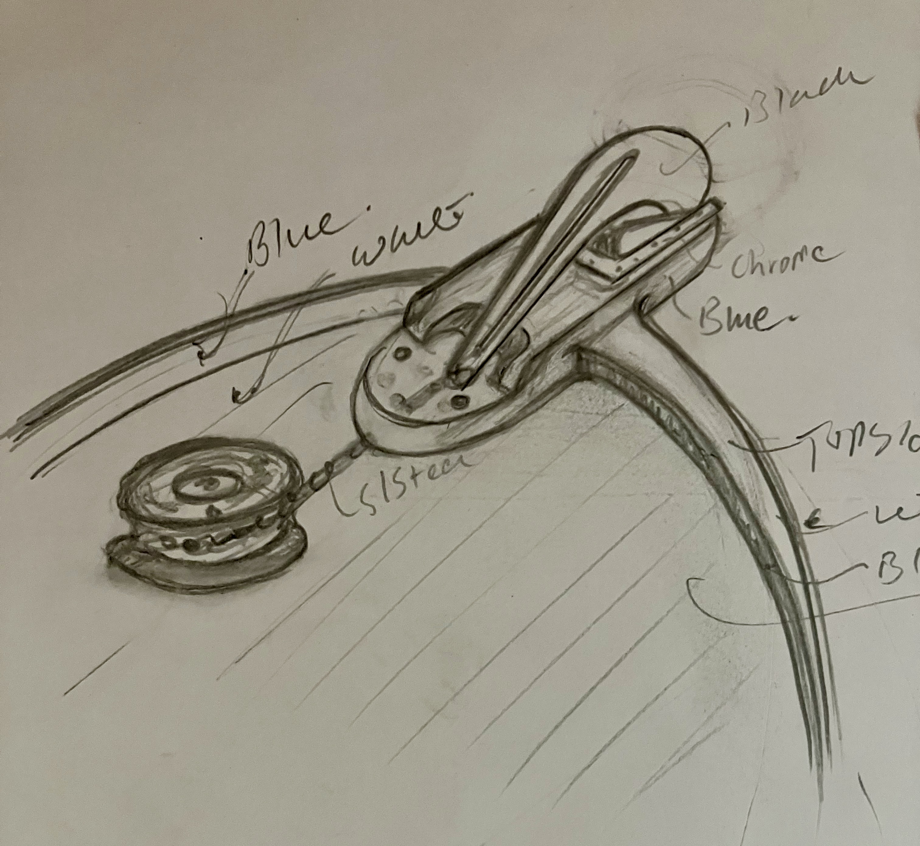 The mast is pretty knackered and has lost its cross rails, so we took the decision to make a new one. I’m in the process of designing this so will forward that on when it’s done. I want it to look very streamlined 50’s so taking those curves at the back and the new bowsprit design as inspiration so they all work together.