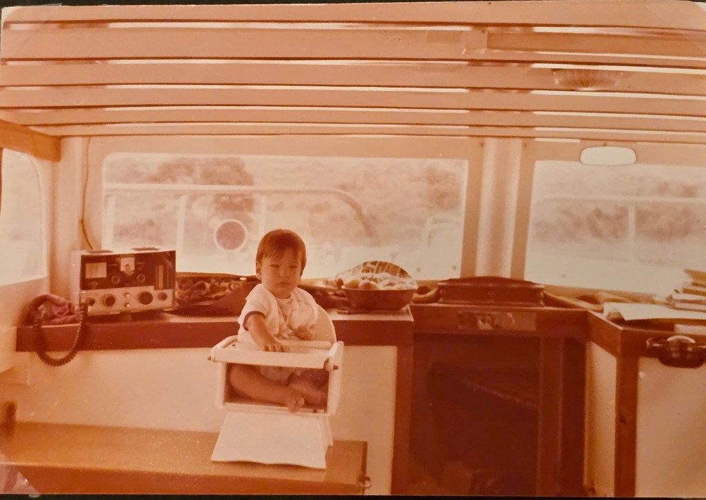 Mark sent in the above photos, the photo of the baby is in fact Mark in a high chair on the freezer of KOALA in about 1978. Mark commented that one thing he remembers is the freezer had a Hauraki Gulf navigational map on the top with epoxy over it. In a previous WW KOALA story in April 2015 we had a photo of a launch that Mark is confident was wrongly labelled as being KOALA, Mark pointed out that the featured boats roof line was different and KOALA also never had a davit attached. ( I have made a note on the previous story)