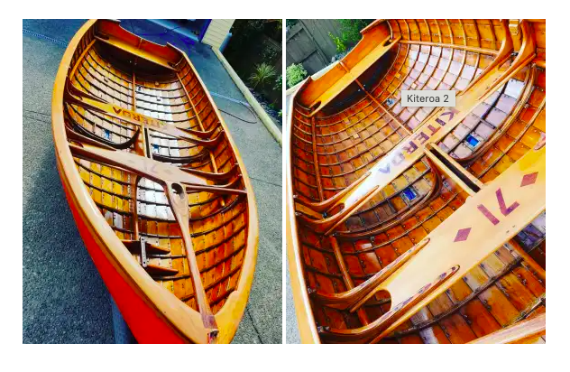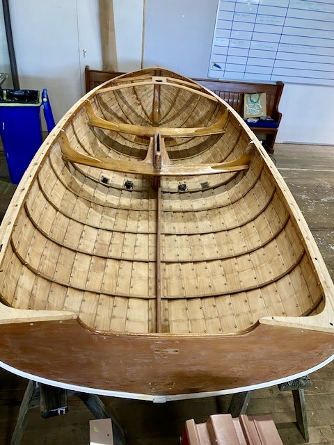 The two photos above are of Colin Pawson’s Frostbite sailing dinghy – CHARISMA which Colin is currently giving a birthday. Interesting observation – the new ribs aren’t steam bent, but laminated with the aim to be much stronger and lighter. As we have come to expect from Mr Pawson over the years attention to detail is 10/10.
